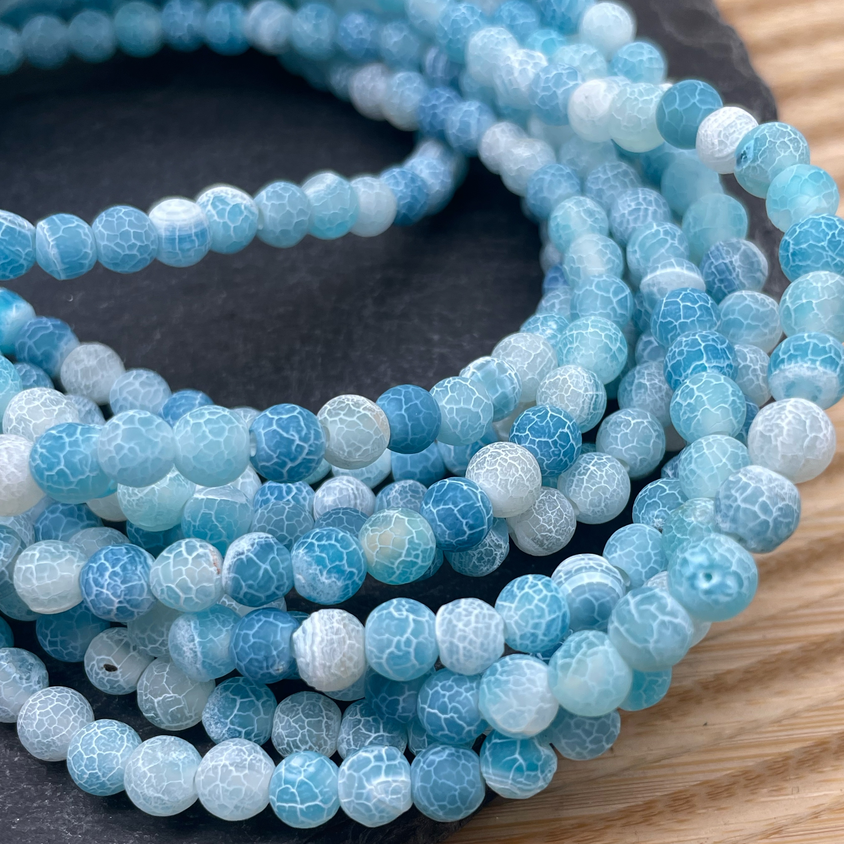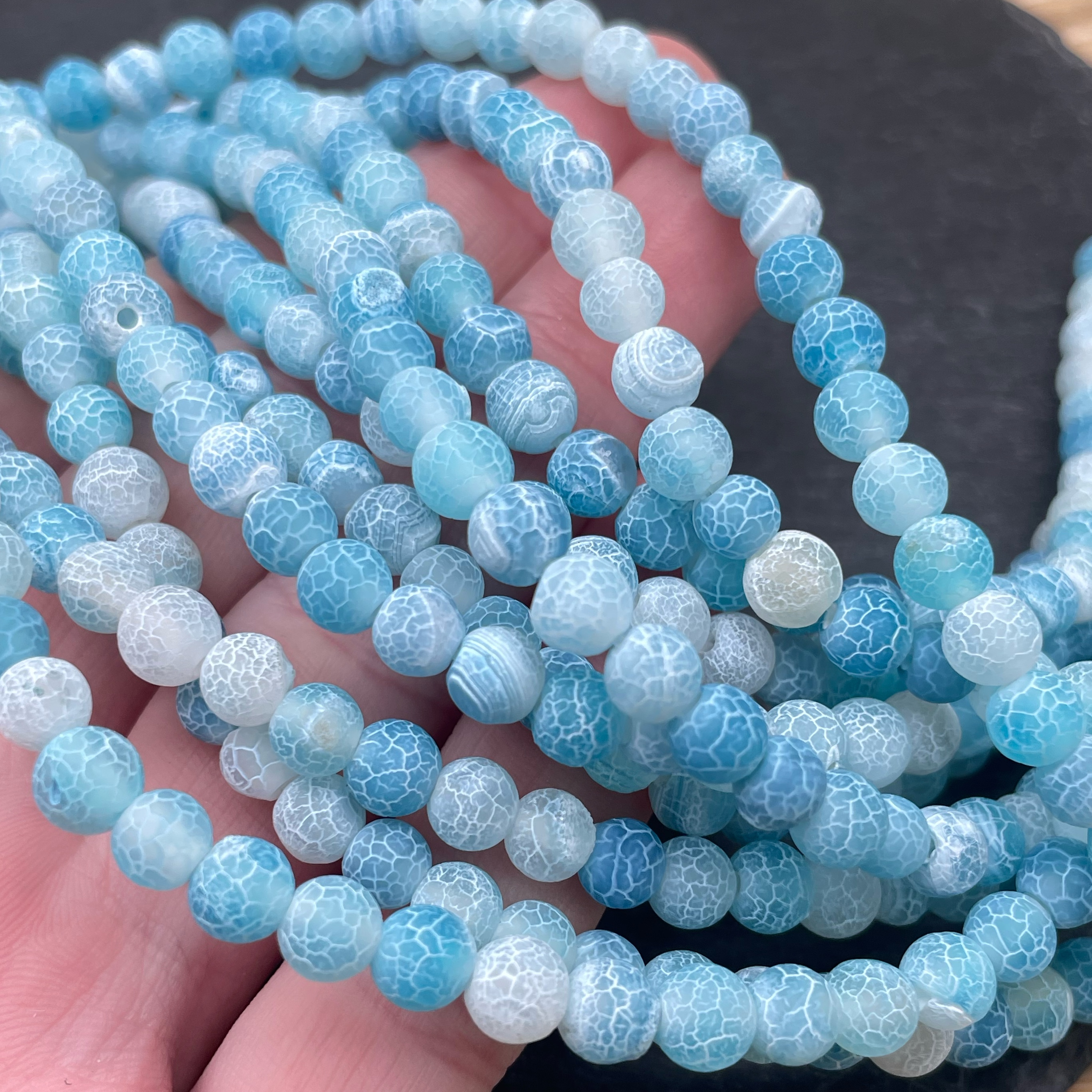Агат кракле светло-голубой 6 мм