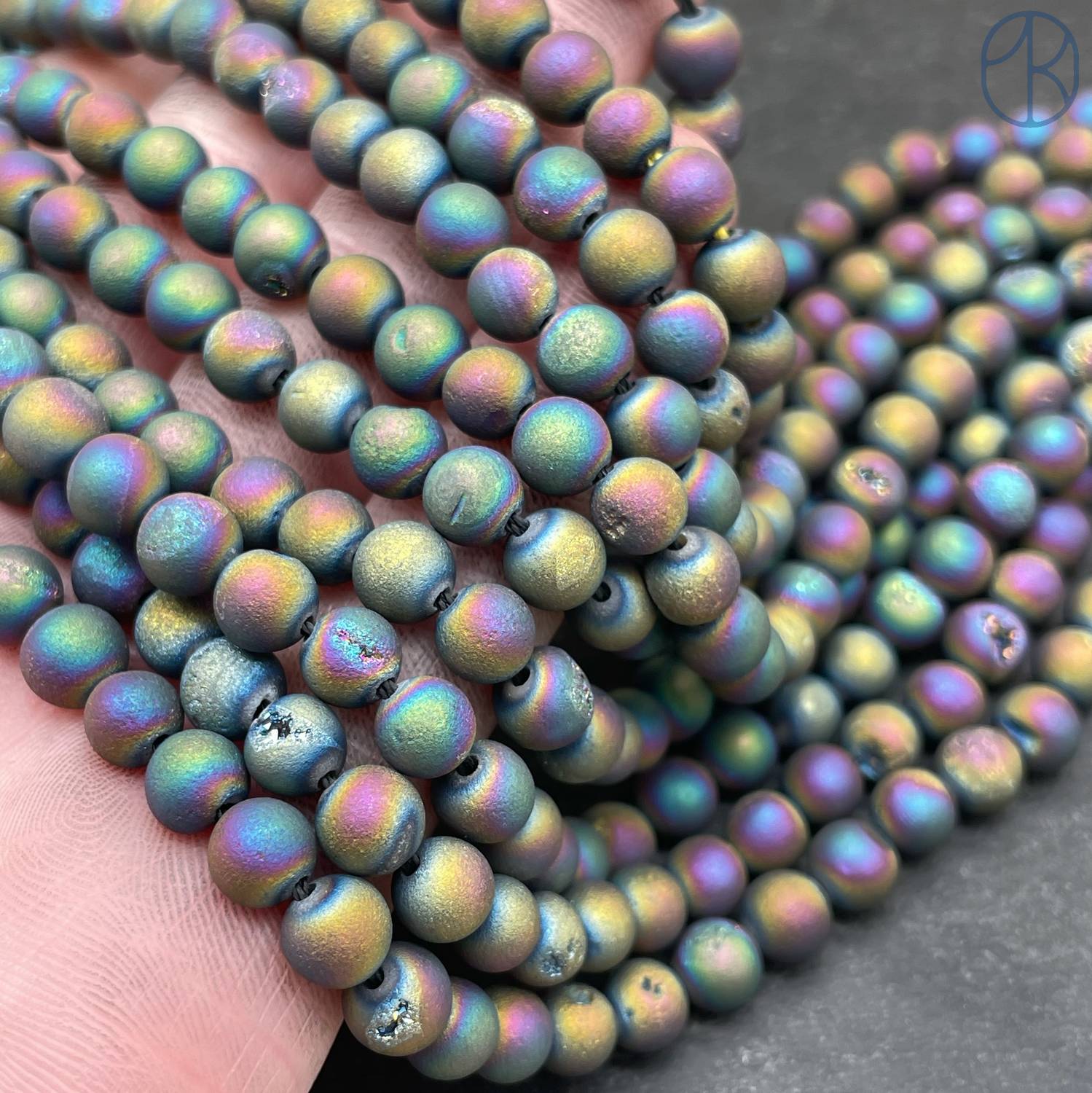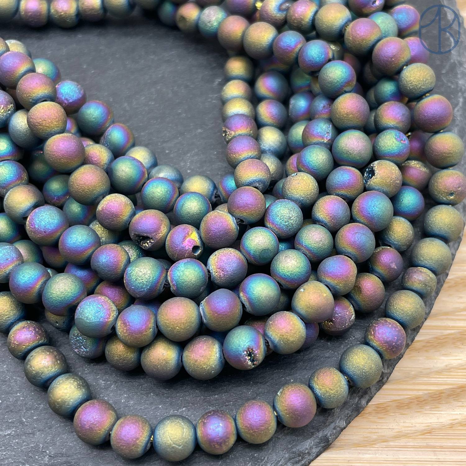 Агат микс тонированный с друзой 6 мм