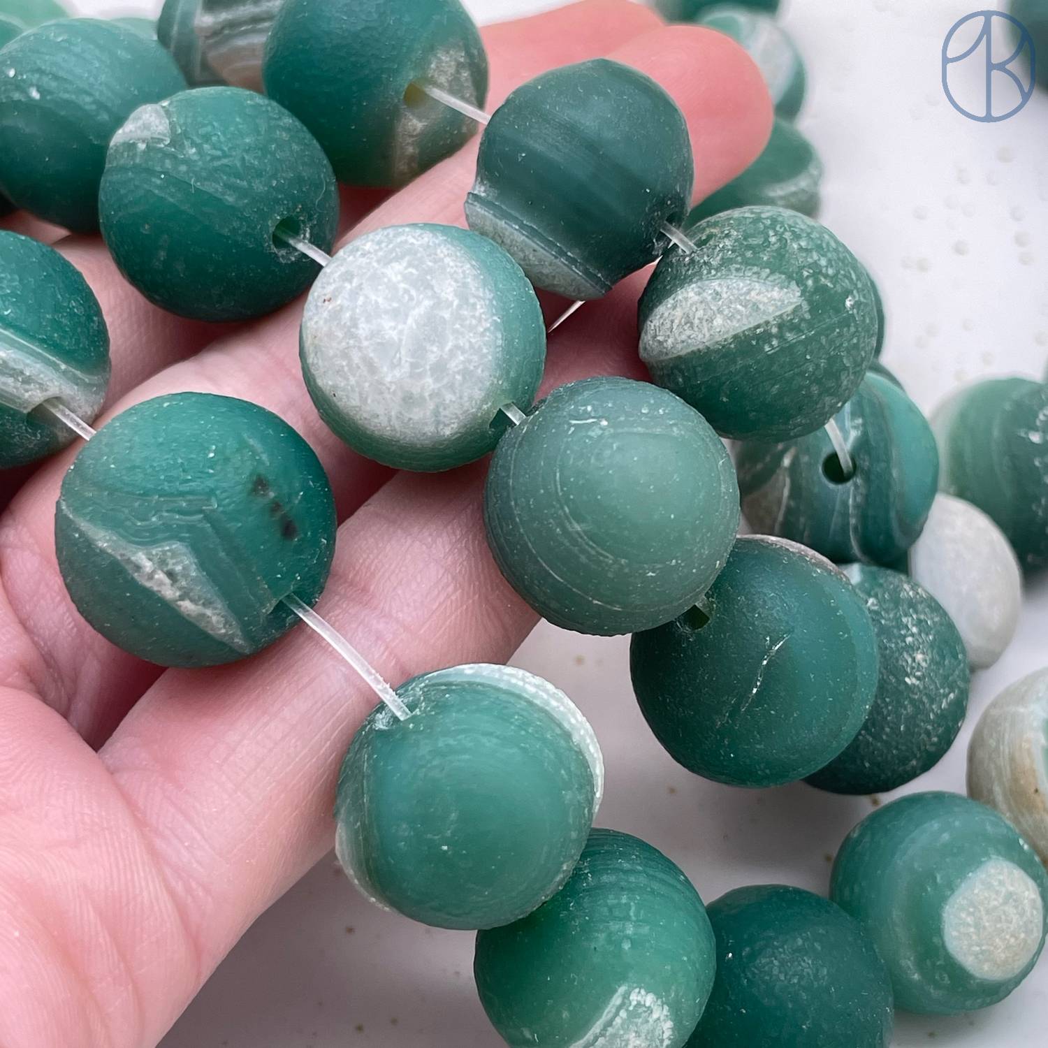 Агат зеленый матовый тонированный ~ 15-17 мм