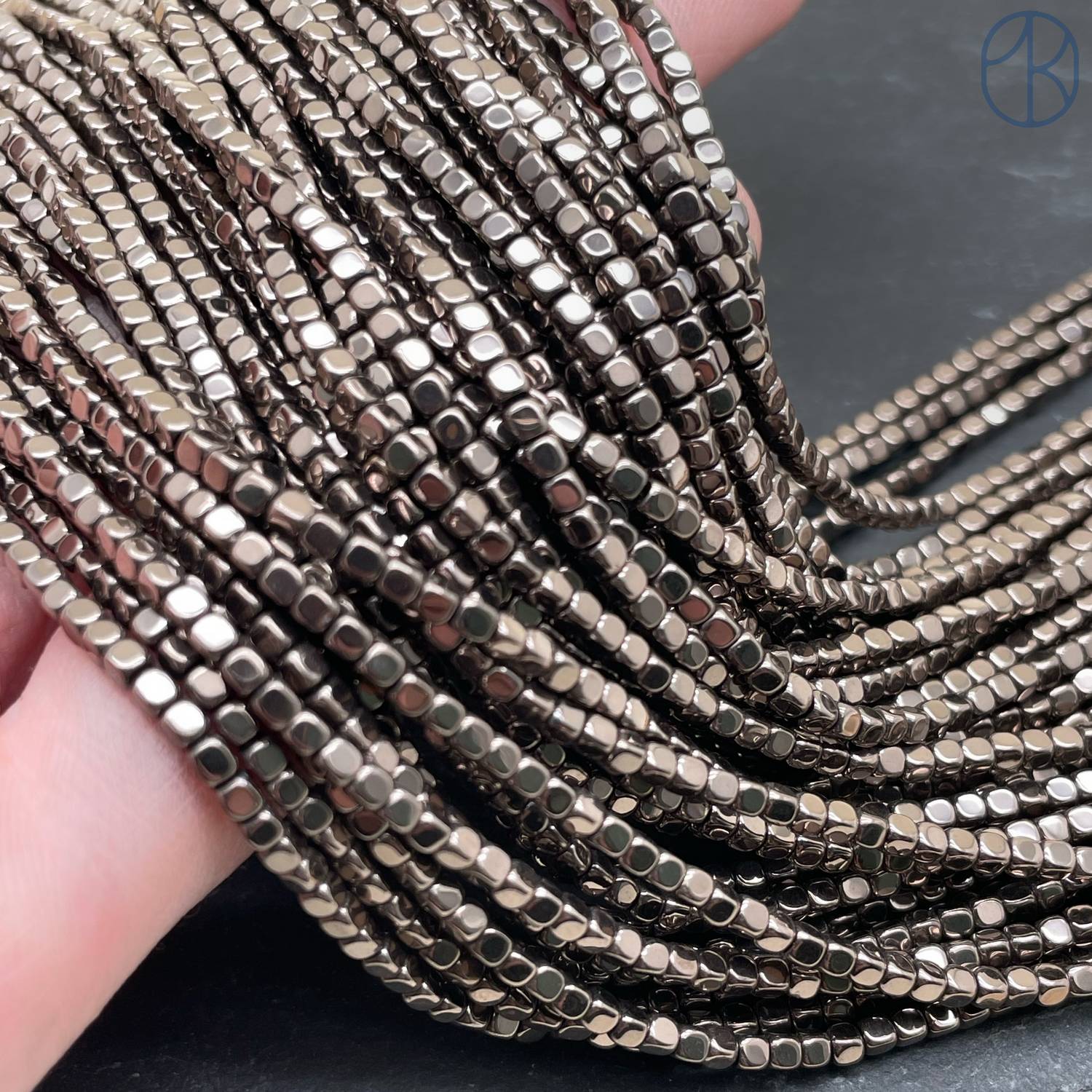 2 мм Гематин имитация, цвет коричневый №2, куб округленные стороны
