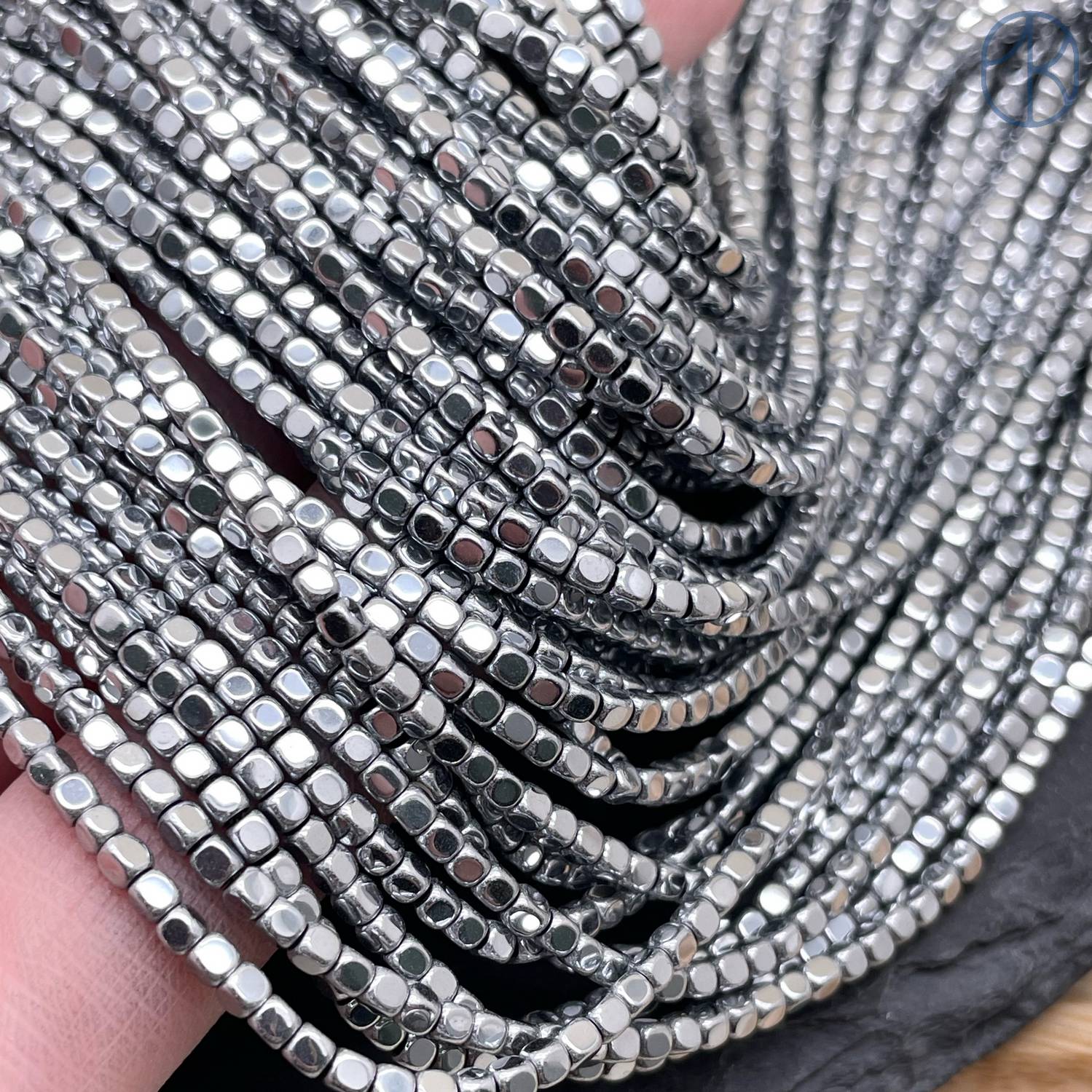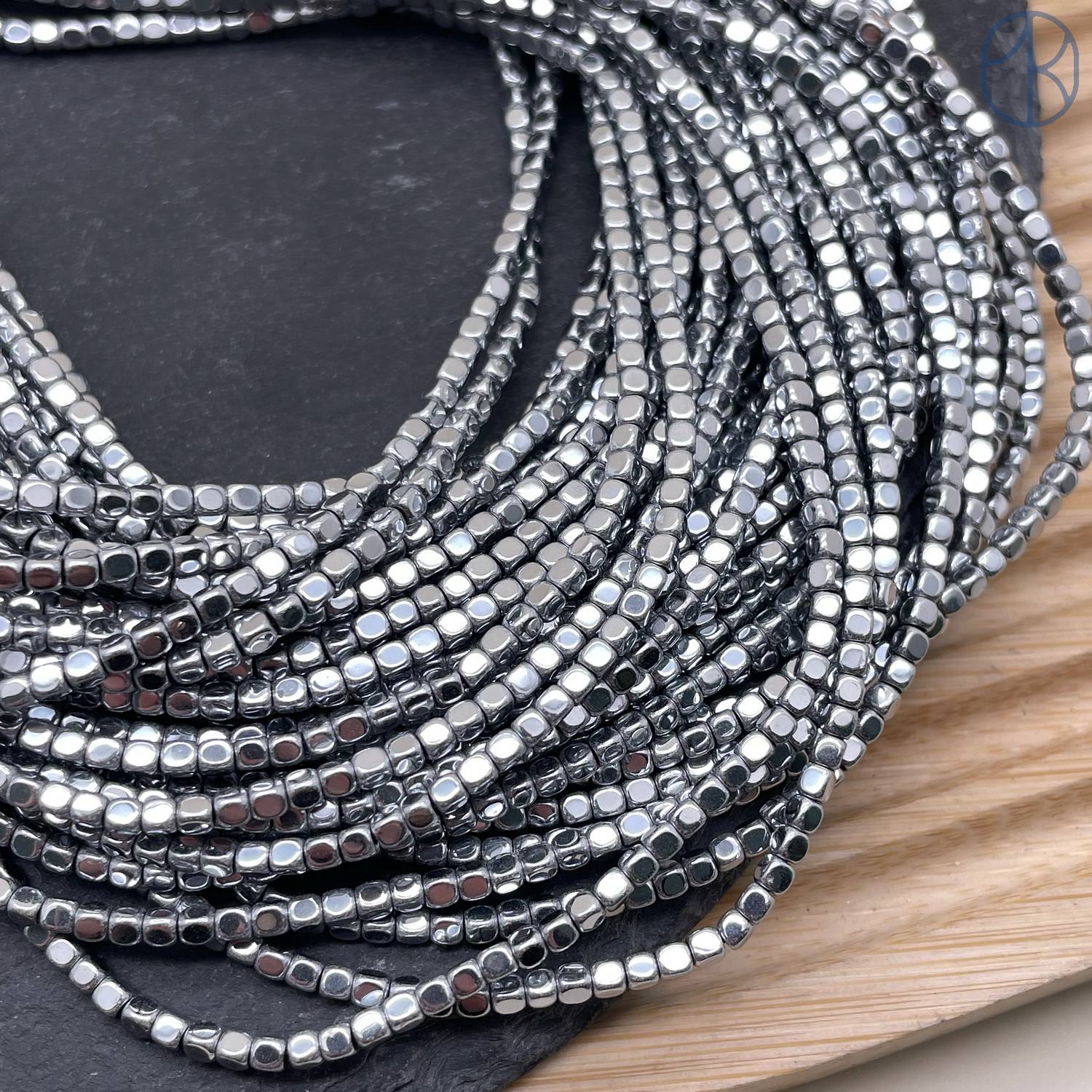 2 мм Гематин, куб округленные стороны, темное серебро имитация