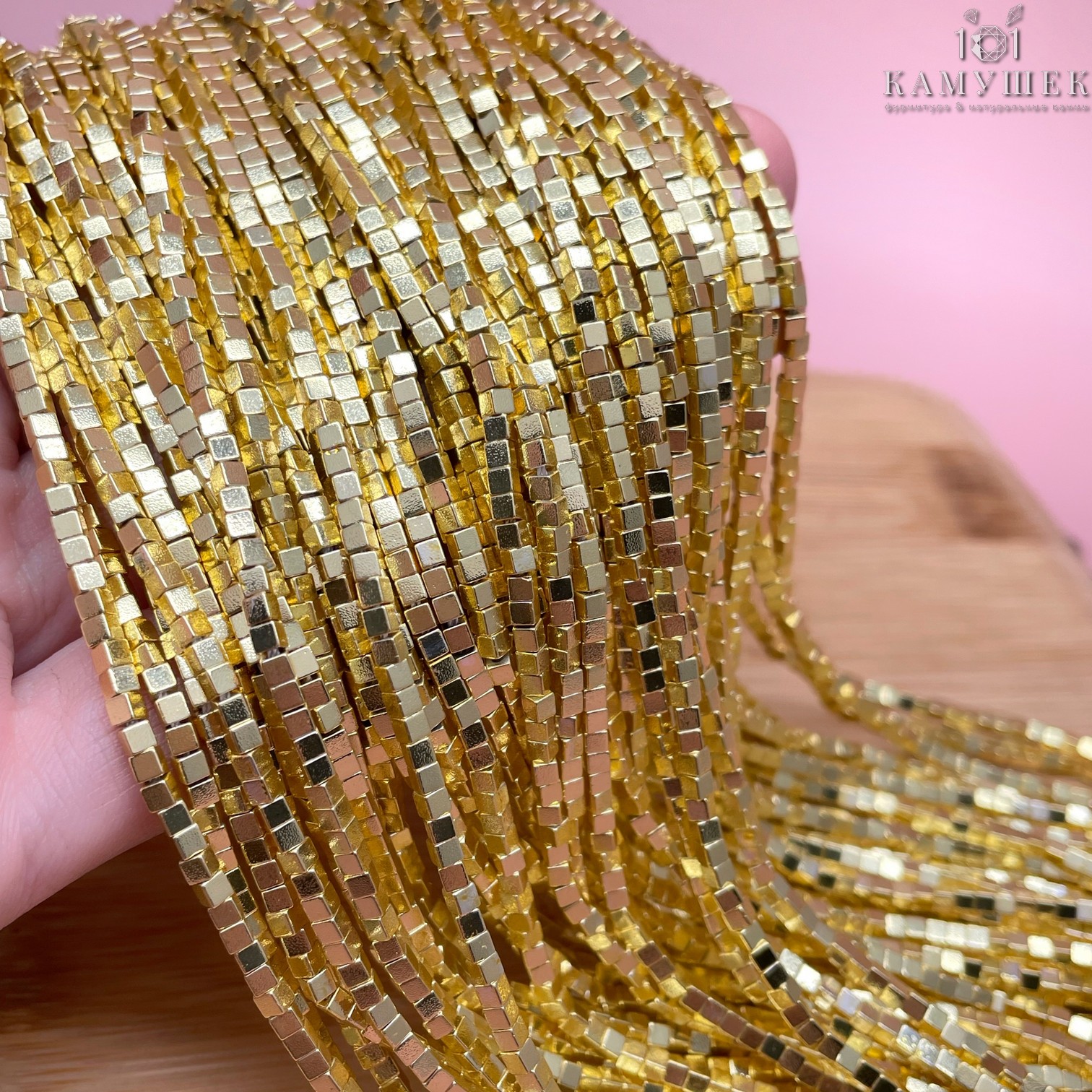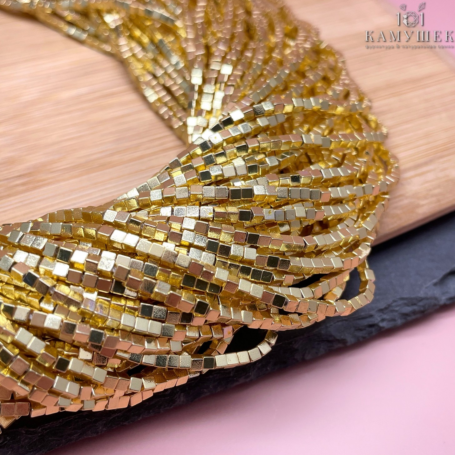 2 мм Гематин имитация, цвет светлое золото, куб УЦЕНКА