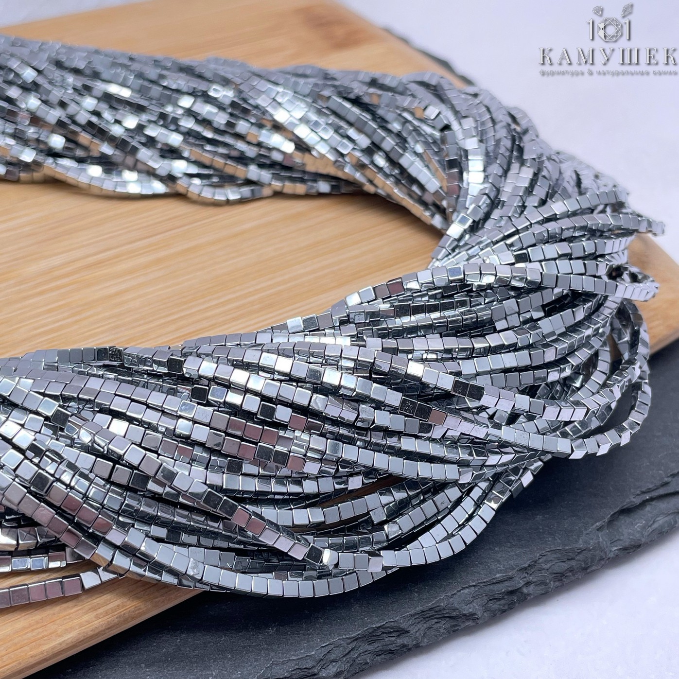 2 мм Гематин имитация, цвет темное серебро, куб
