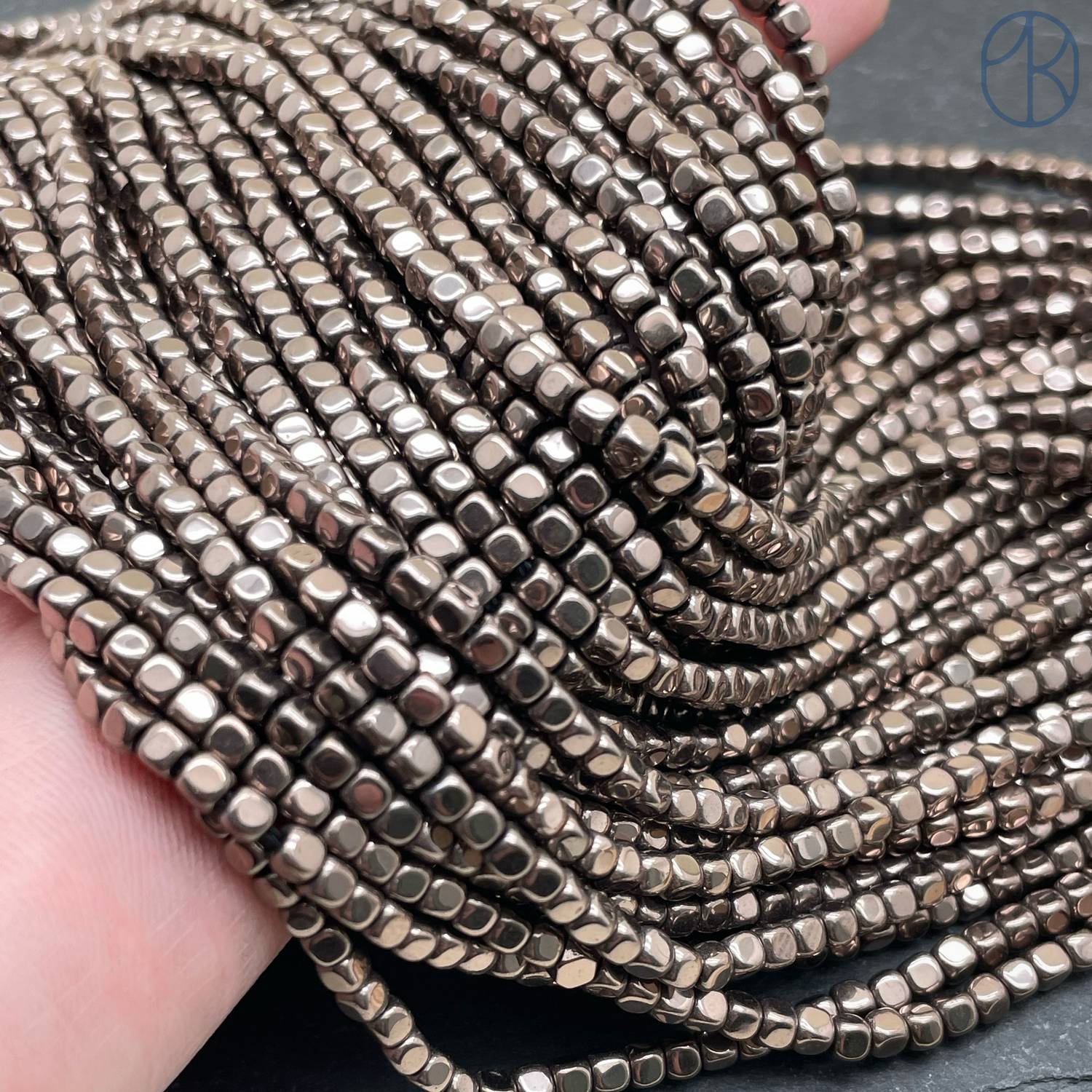 3 мм Гематин имитация, цвет коричневый №2, куб округленные стороны