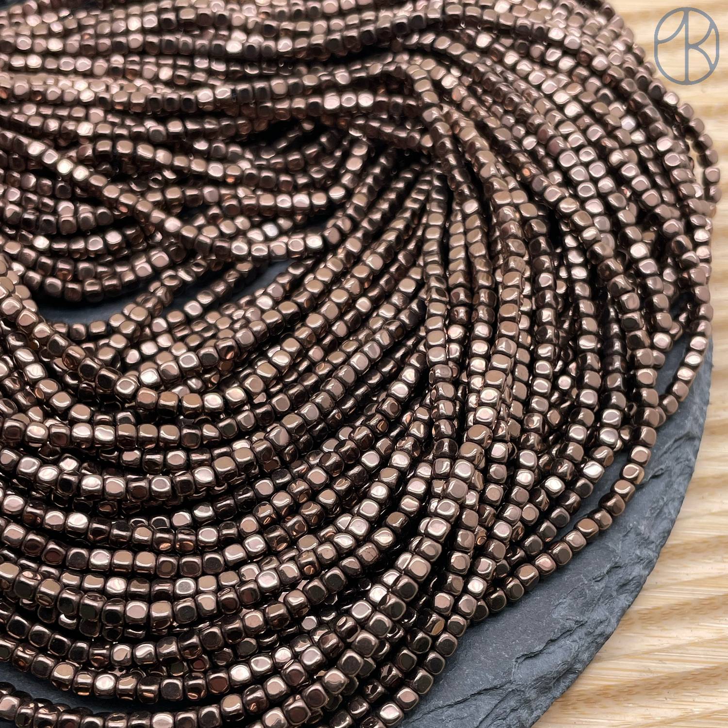 3 мм Гематин имитация, цвет коричневый, куб округленные стороны