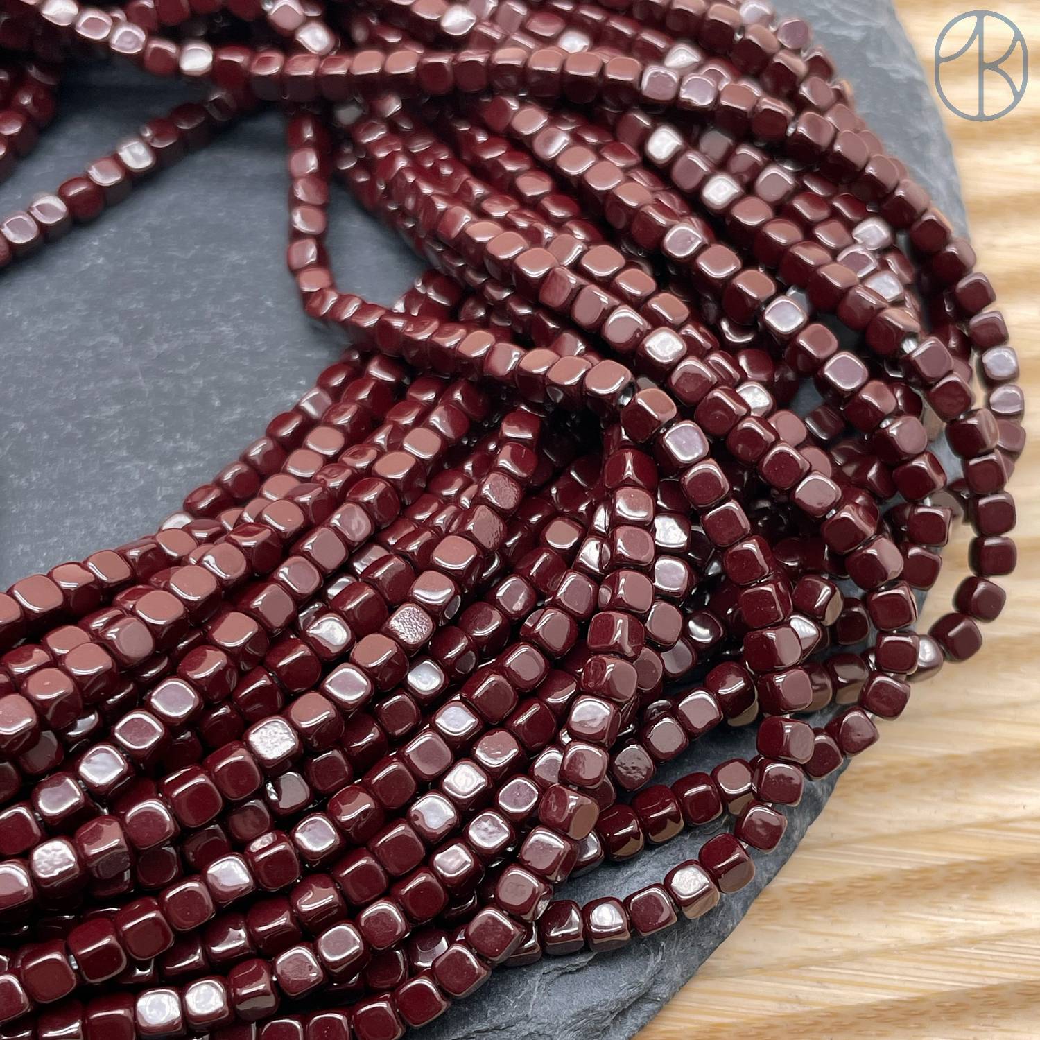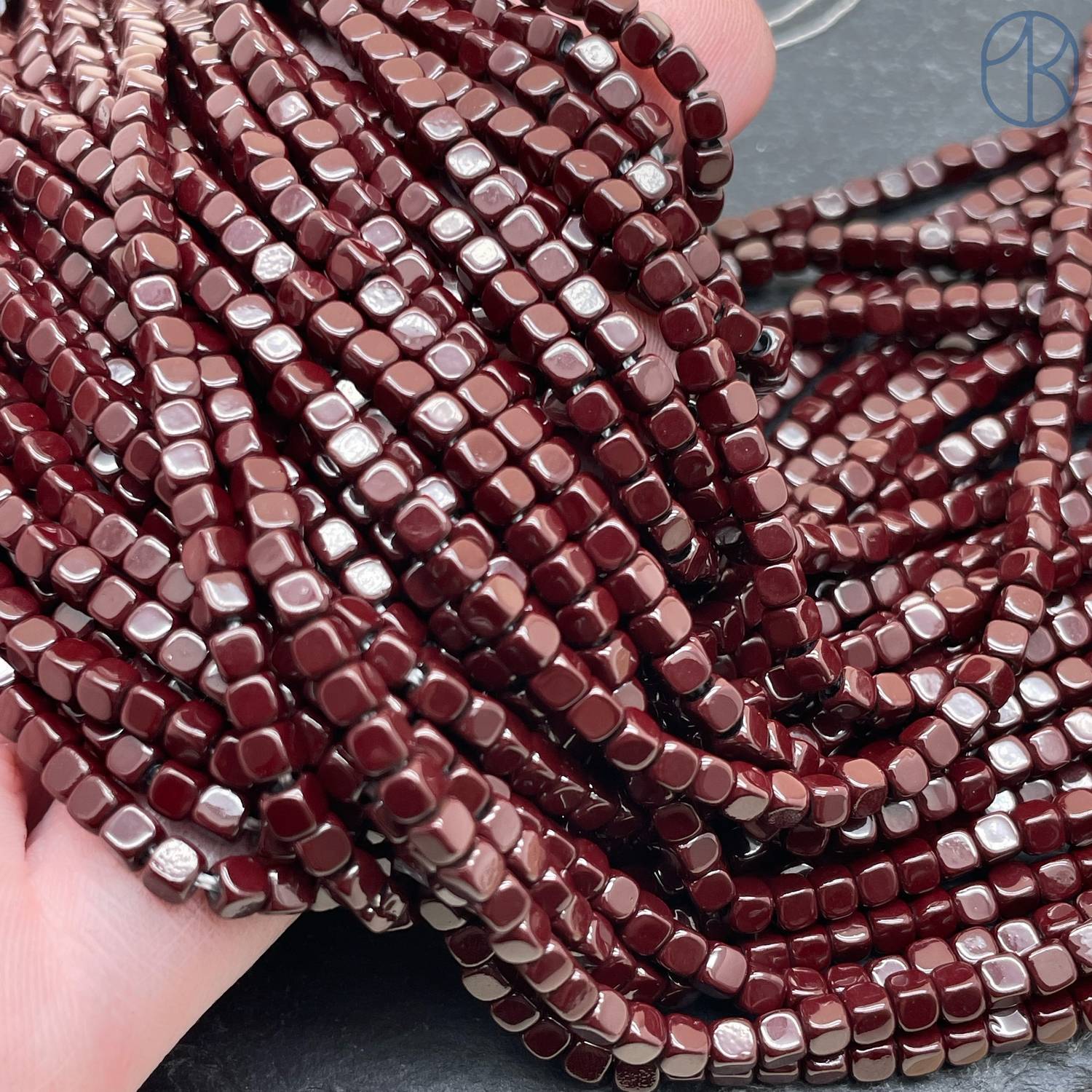 3 мм Гематин, куб округленные стороны, темно-бордовый имитация