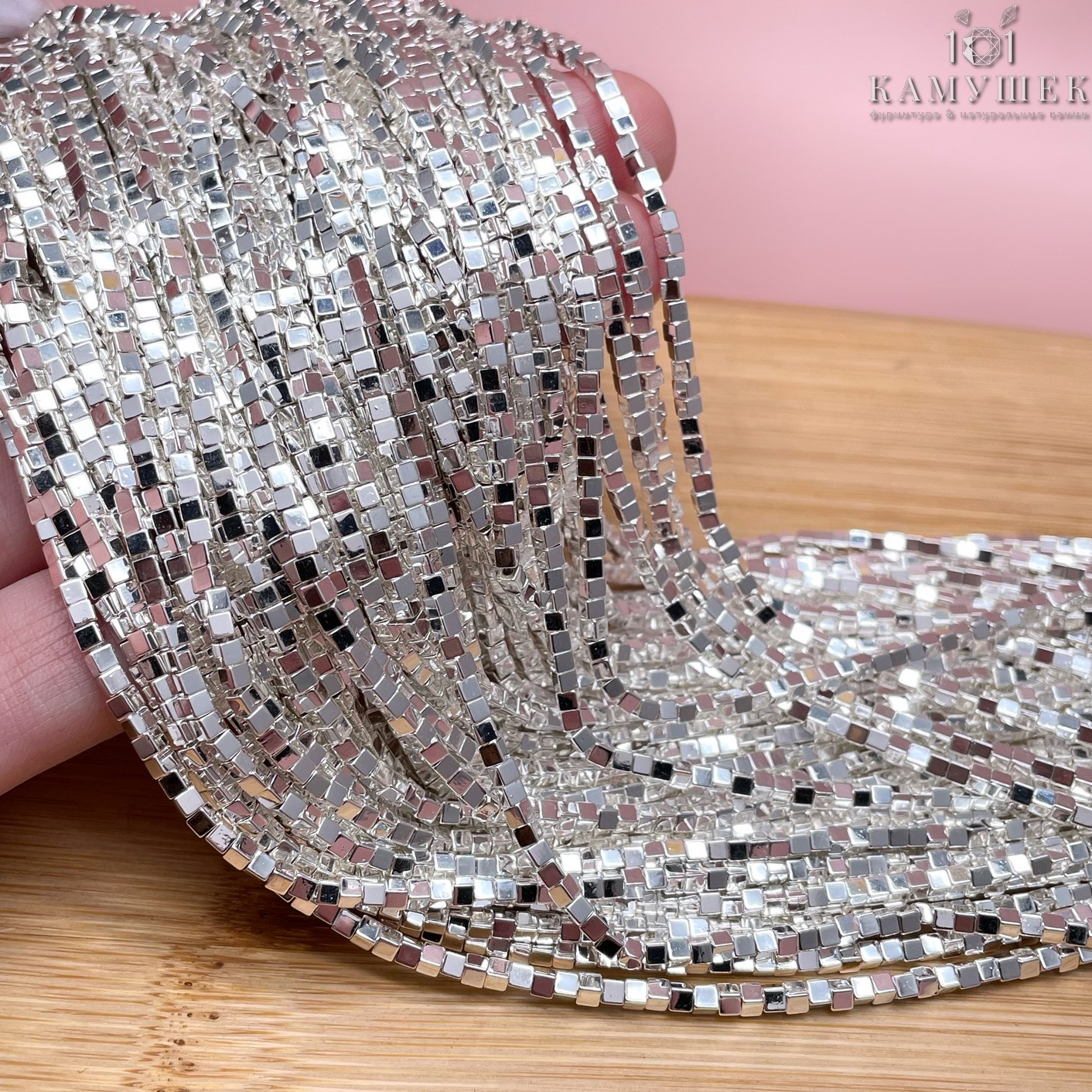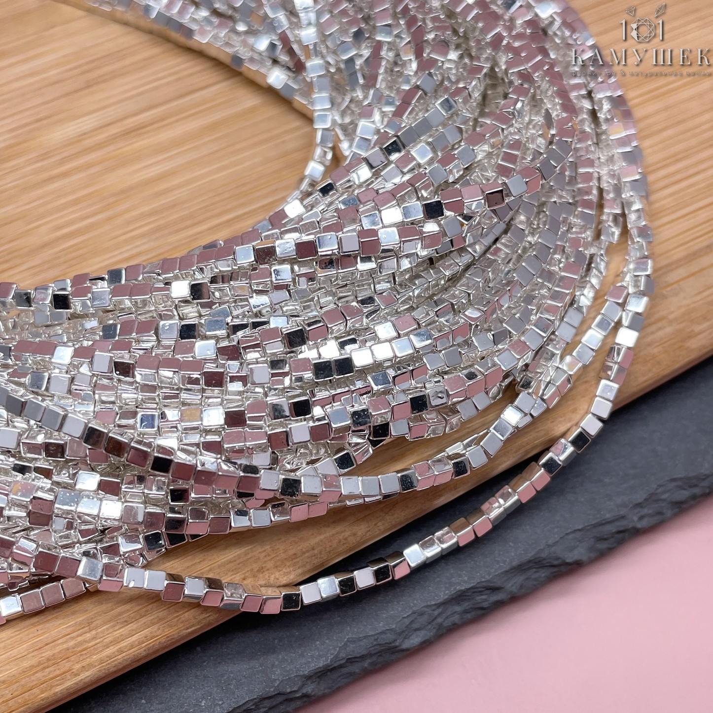 2 мм Гематин имитация, цвет светлое серебро, куб