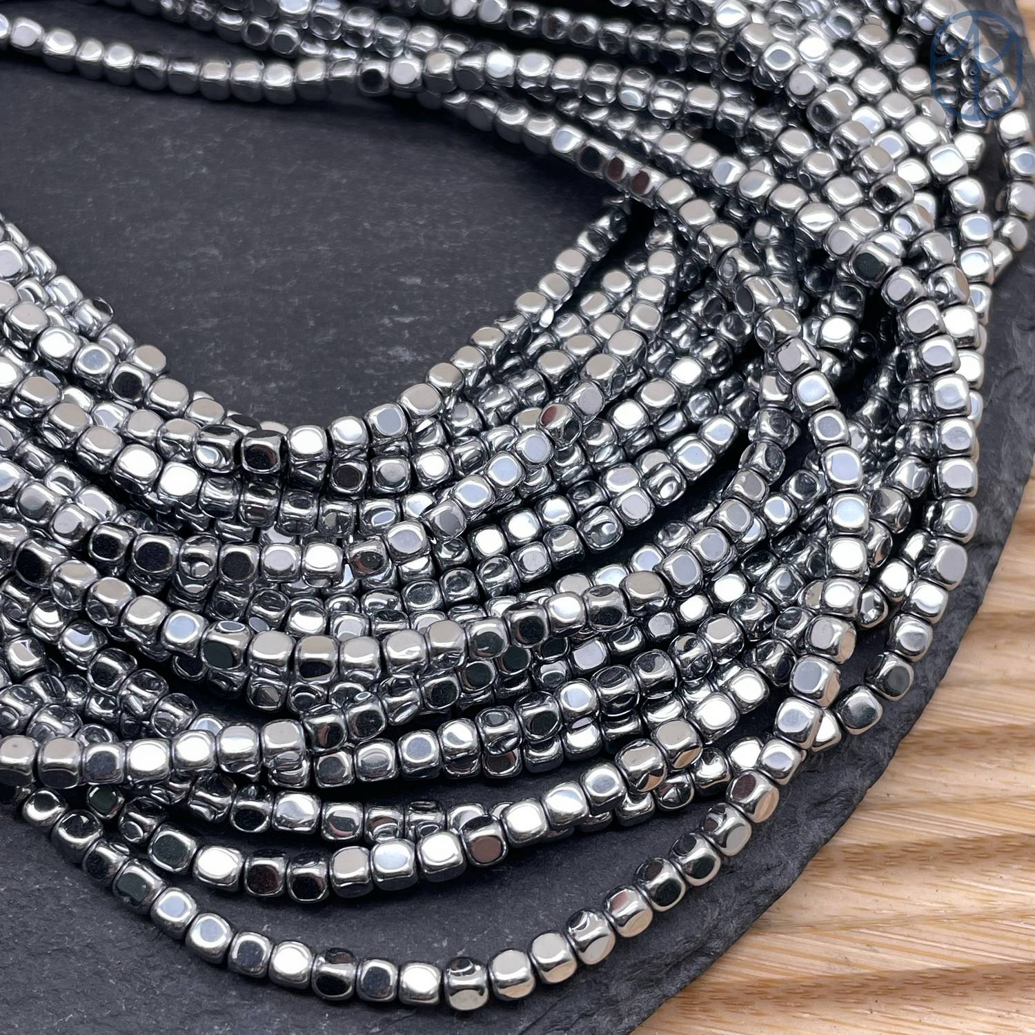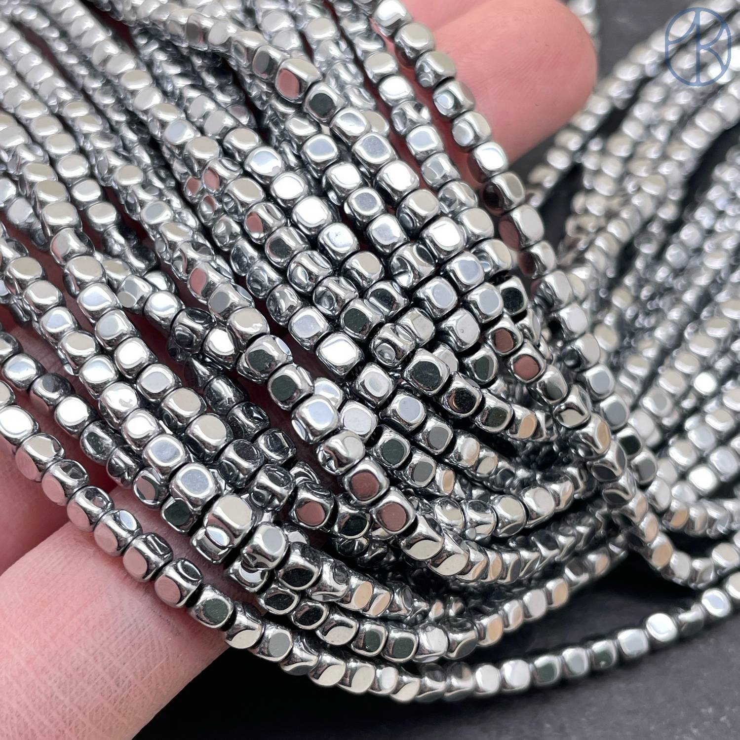 3 мм Гематин, куб округленные стороны, темное серебро имитация