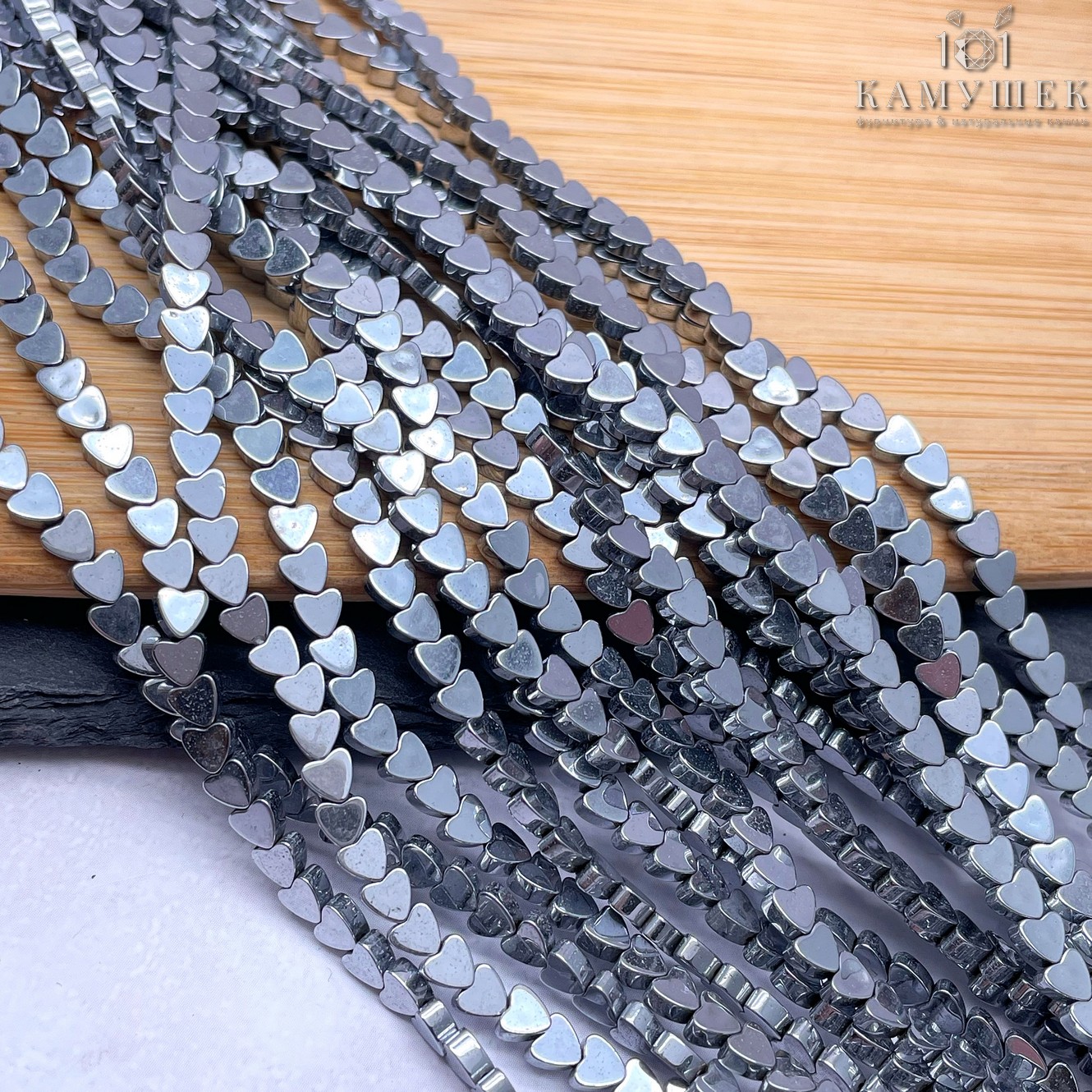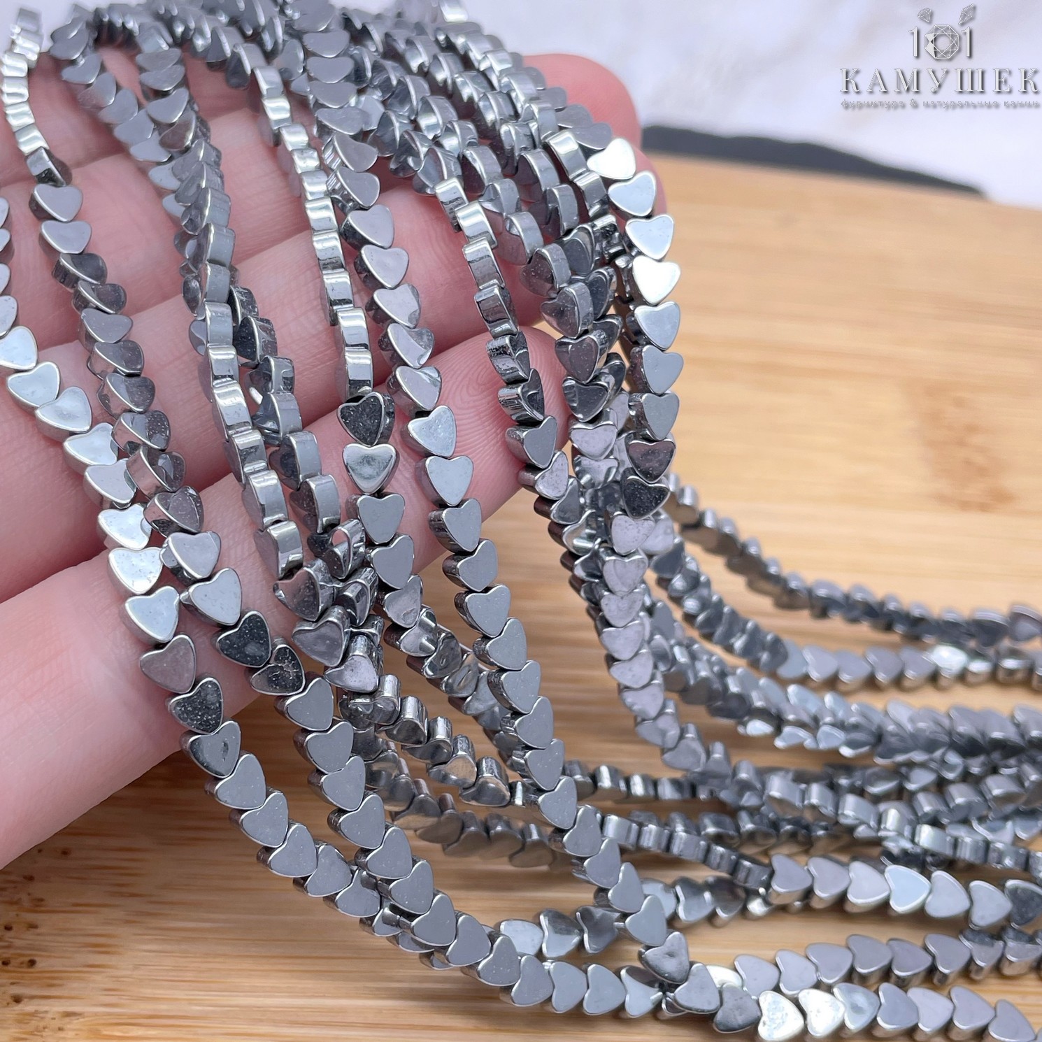 4мм Гематин, цвет темное серебро, сердце плоское имитация