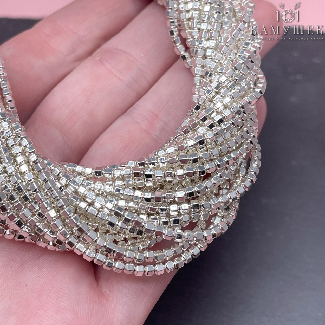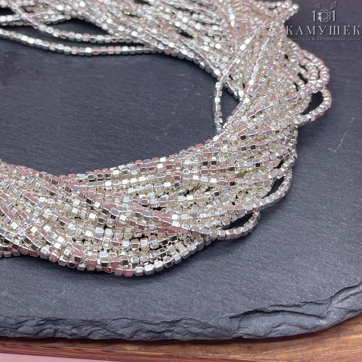 2 мм Гематин имитация, цвет светлое серебро многогранник