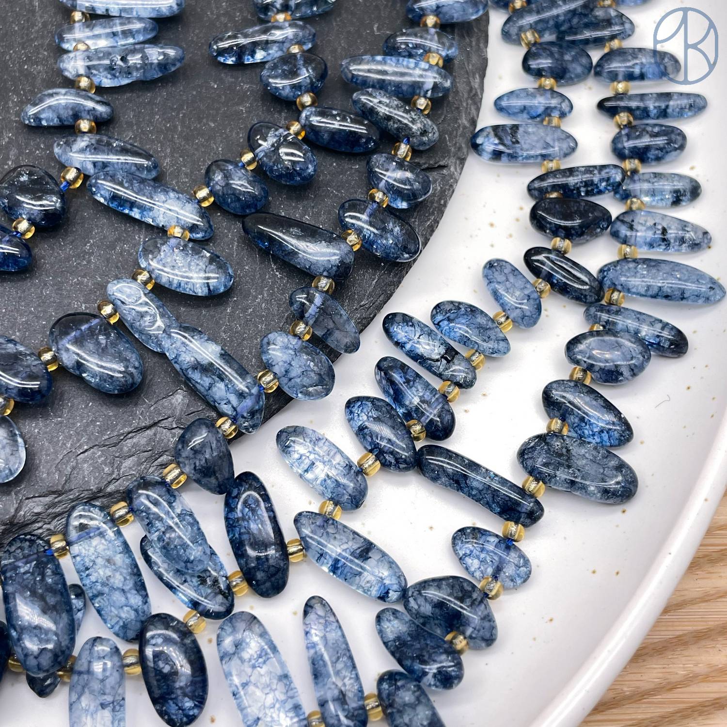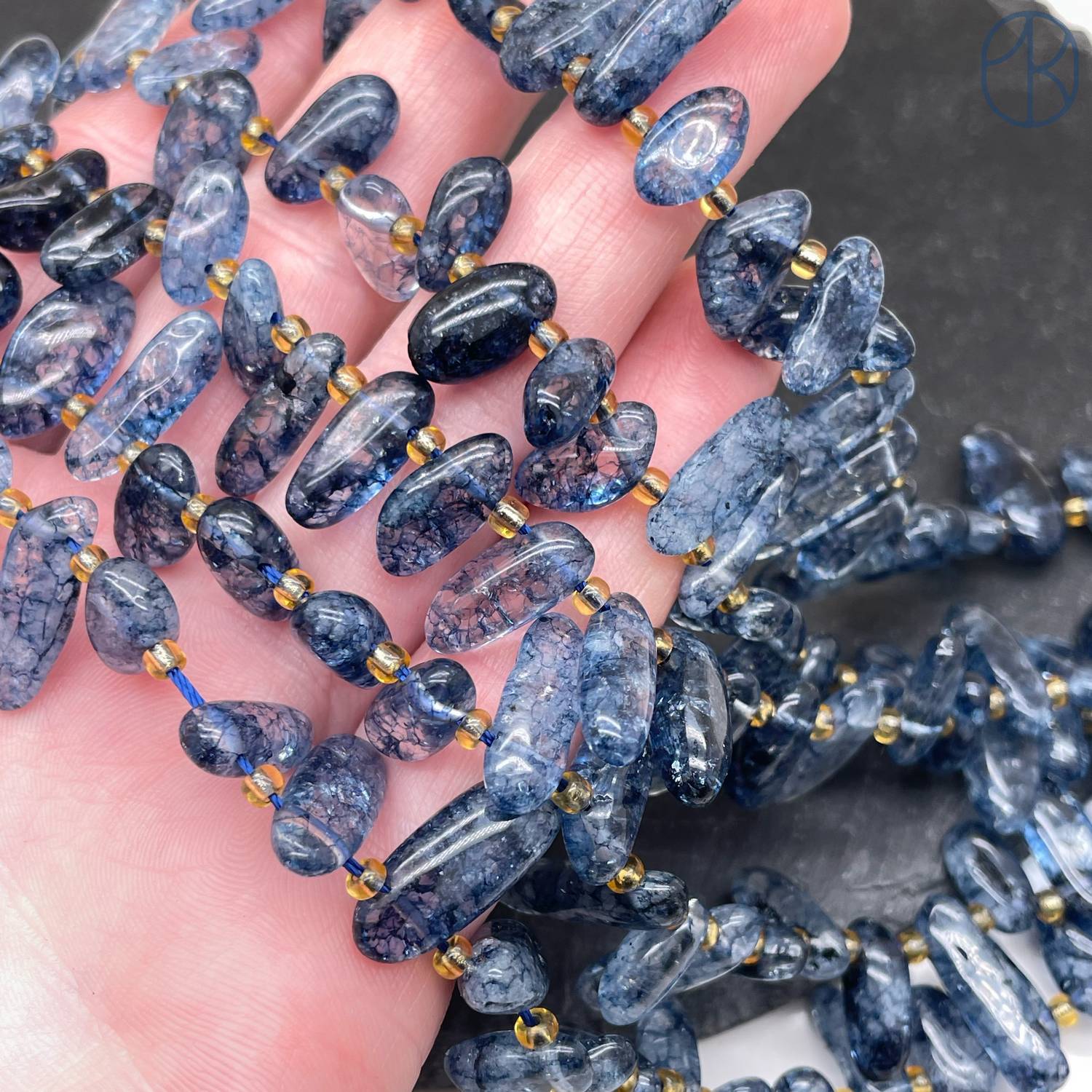Кварц синий тонированный с эффектом Кракле сколы ~ 12-16 мм