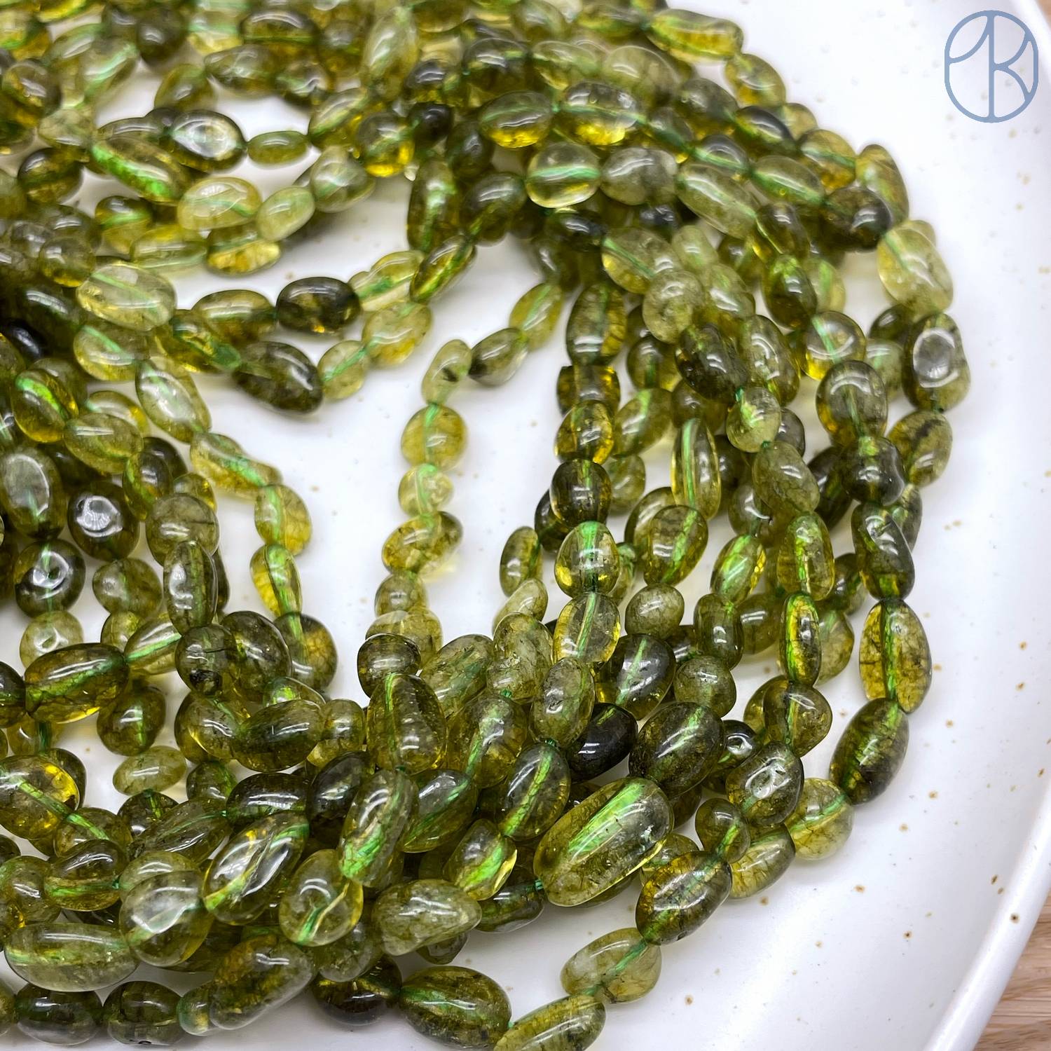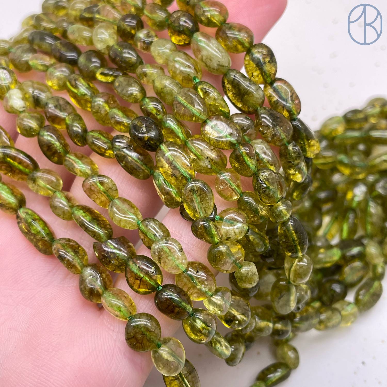 Кварц темно-зеленый тонированный с эффектом Кракле галтовка ~ 6-8 мм