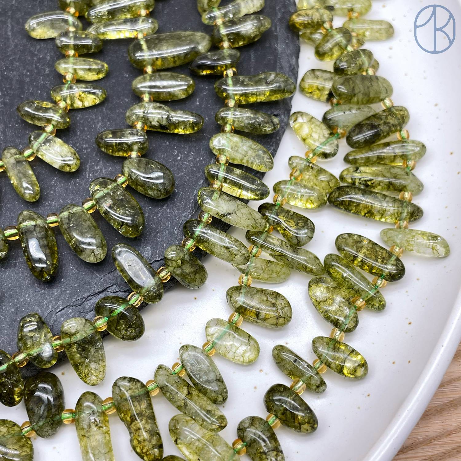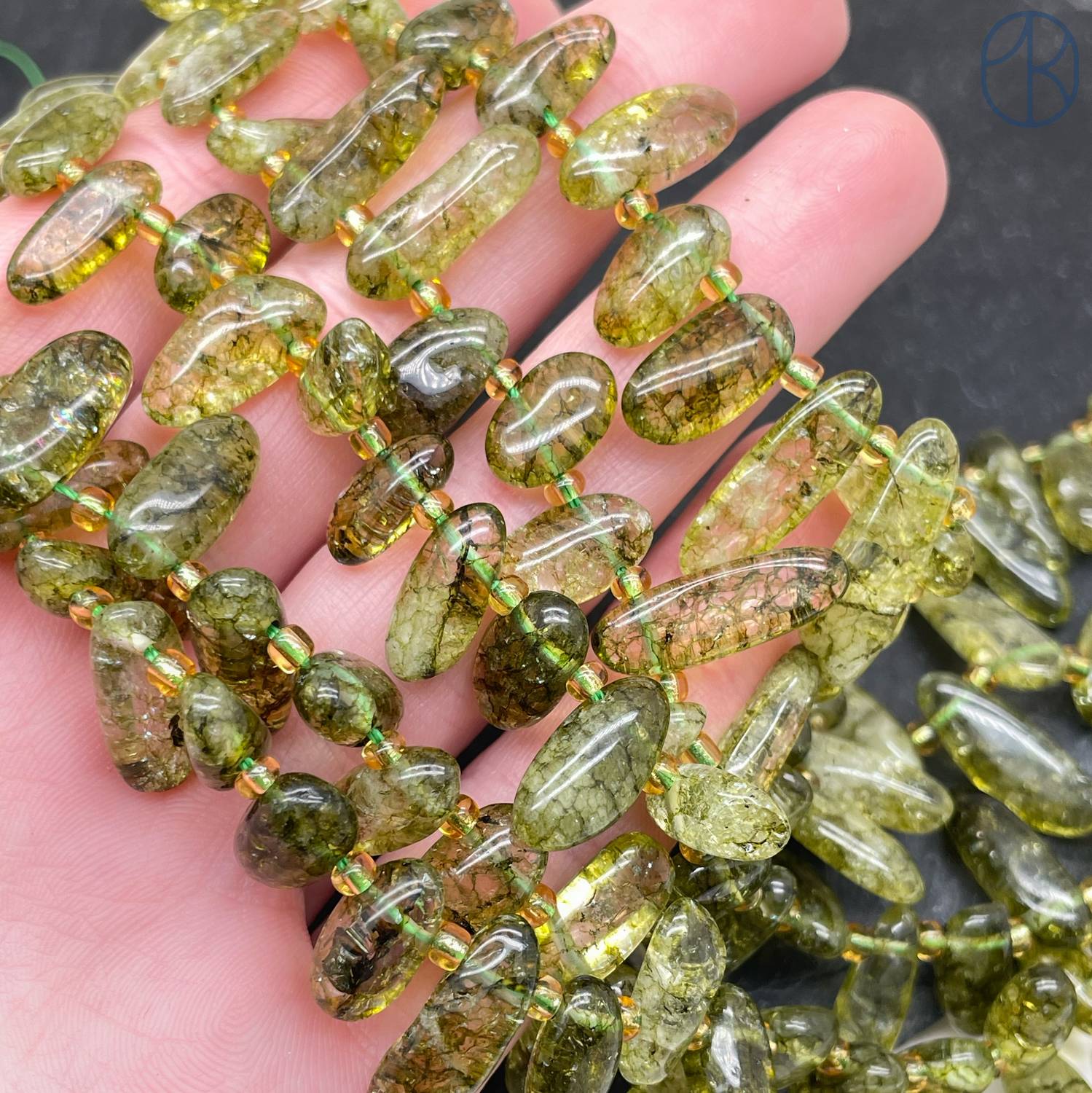 Кварц темно-зеленый тонированный с эффектом Кракле сколы ~ 12-16 мм