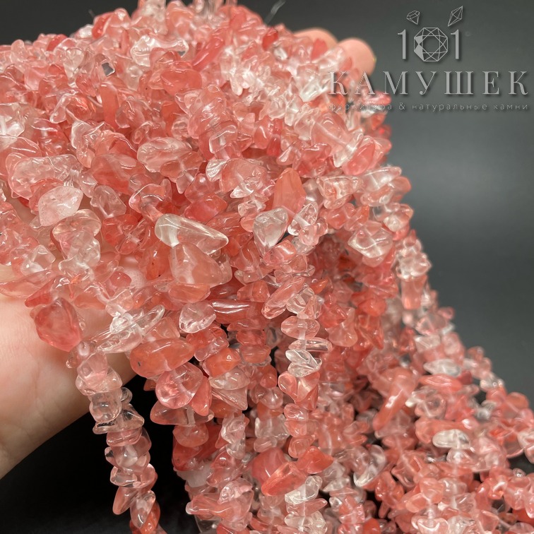 Крошка Вишневый кварц ширина бусин ~ 7-9 мм