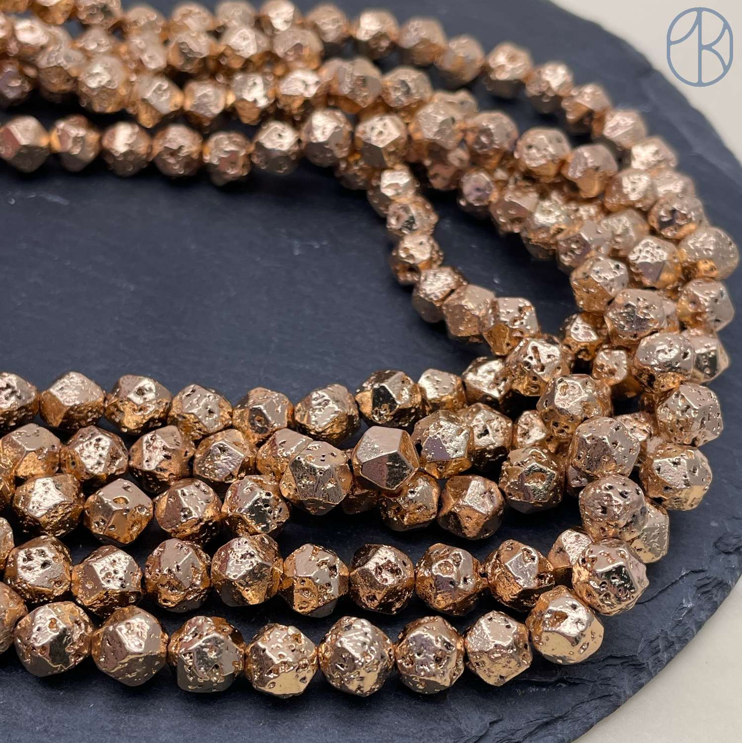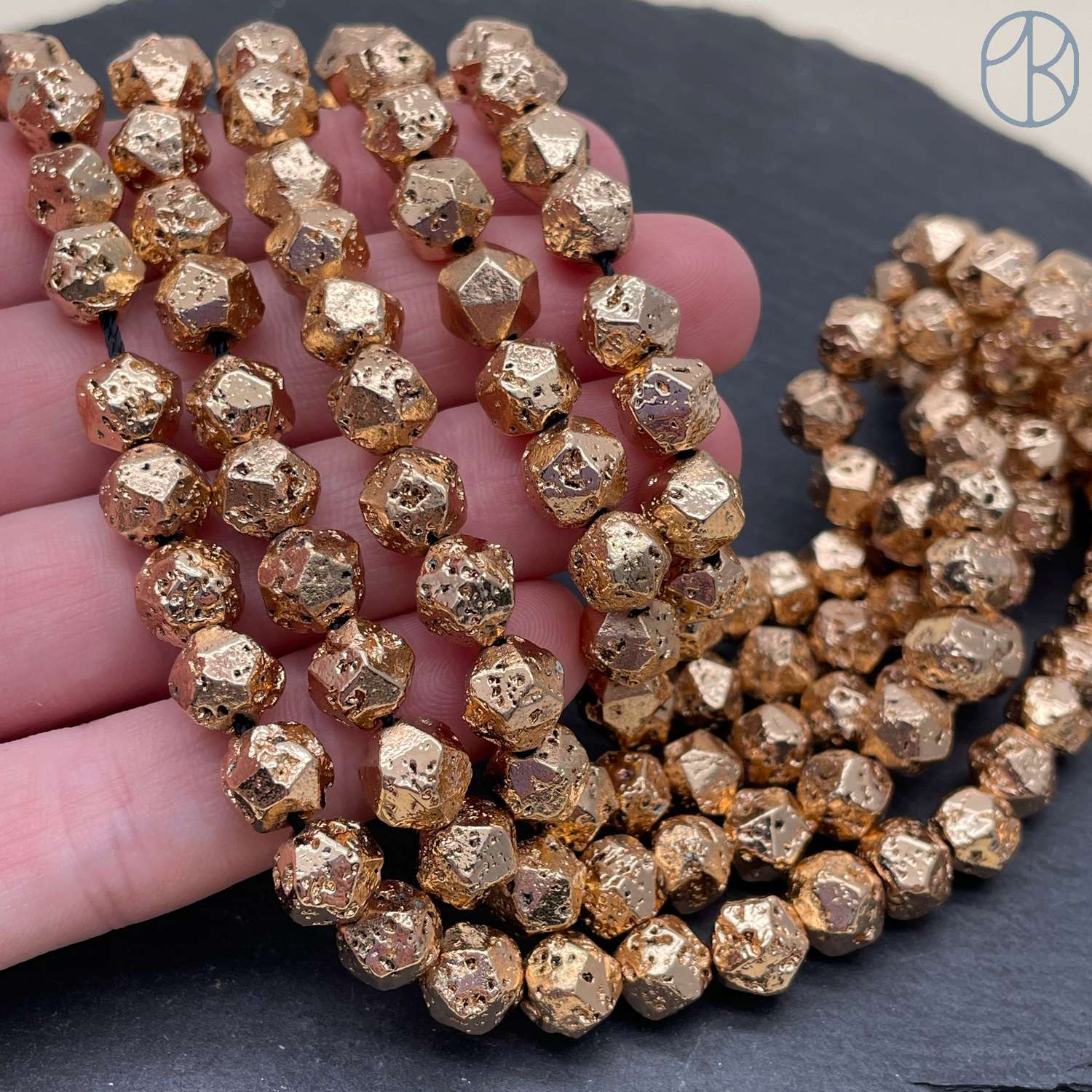 Лава Вулканическая огранка, 8 мм, с покрытием темное золото