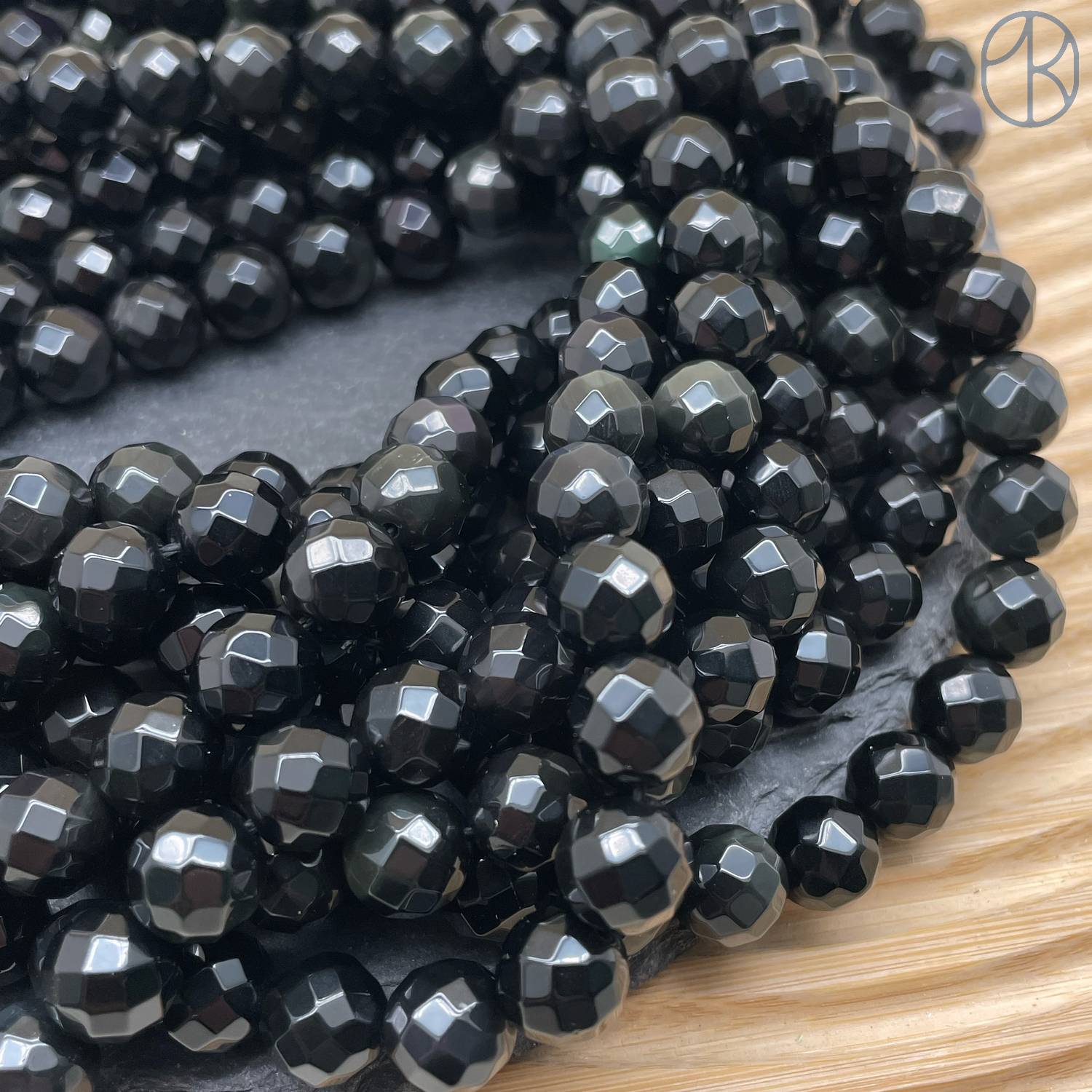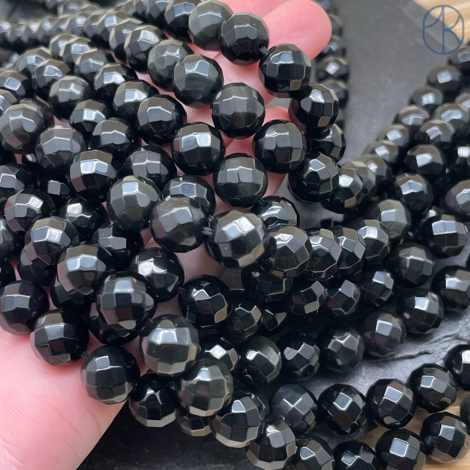 Обсидиан черный крупная огранка 10 мм (64 грани)
