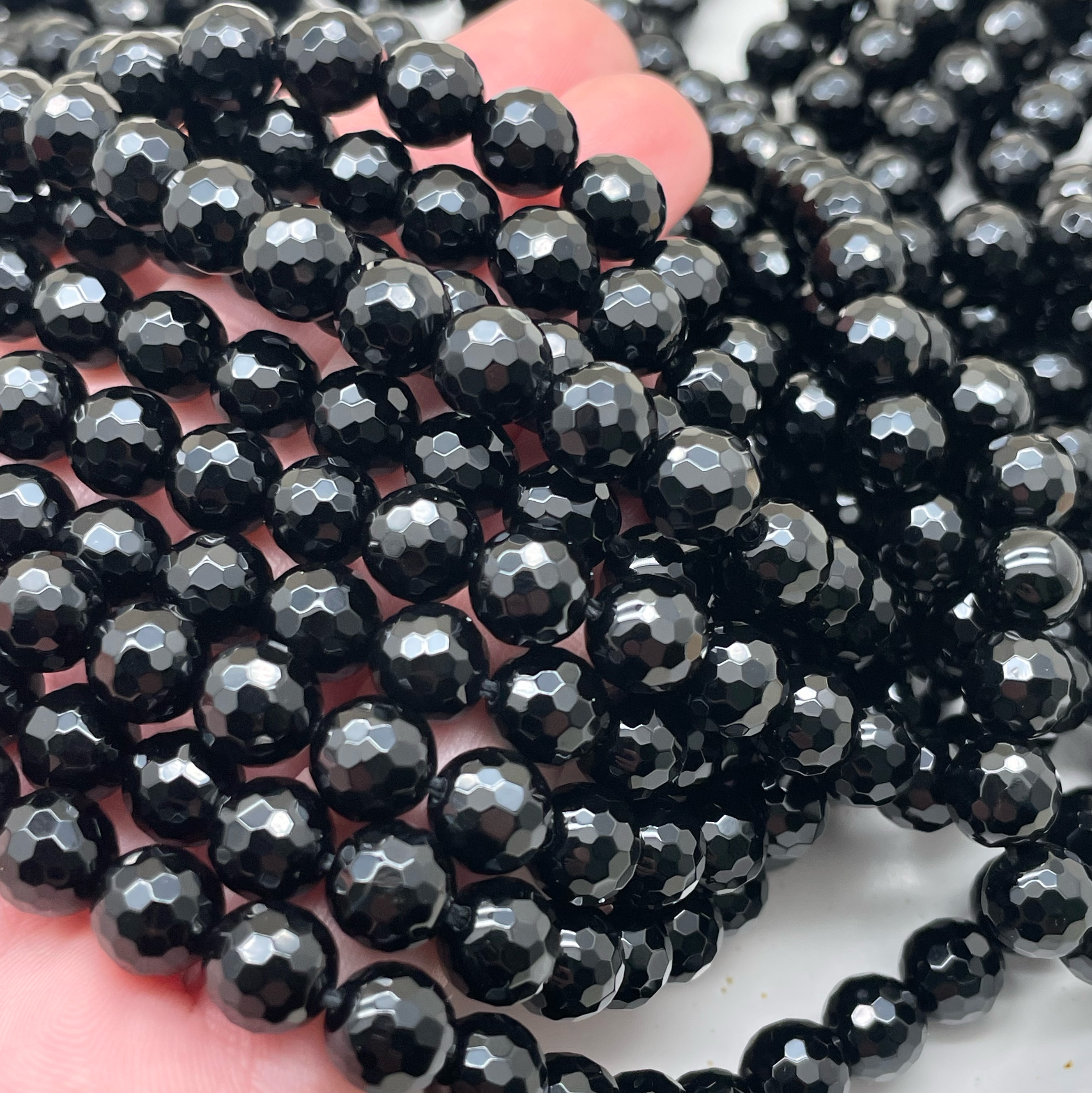 Оникс черный мелкая огранка 8 мм (128 граней)