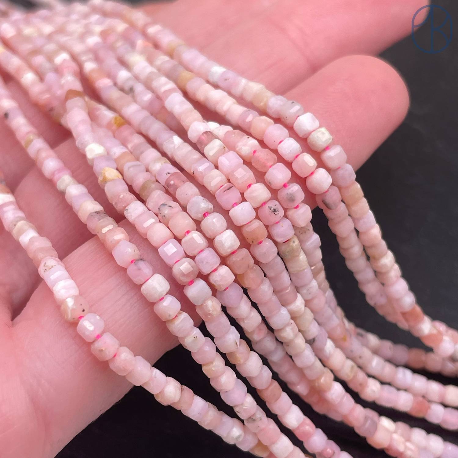 Опал розовый куб огранка 2 мм