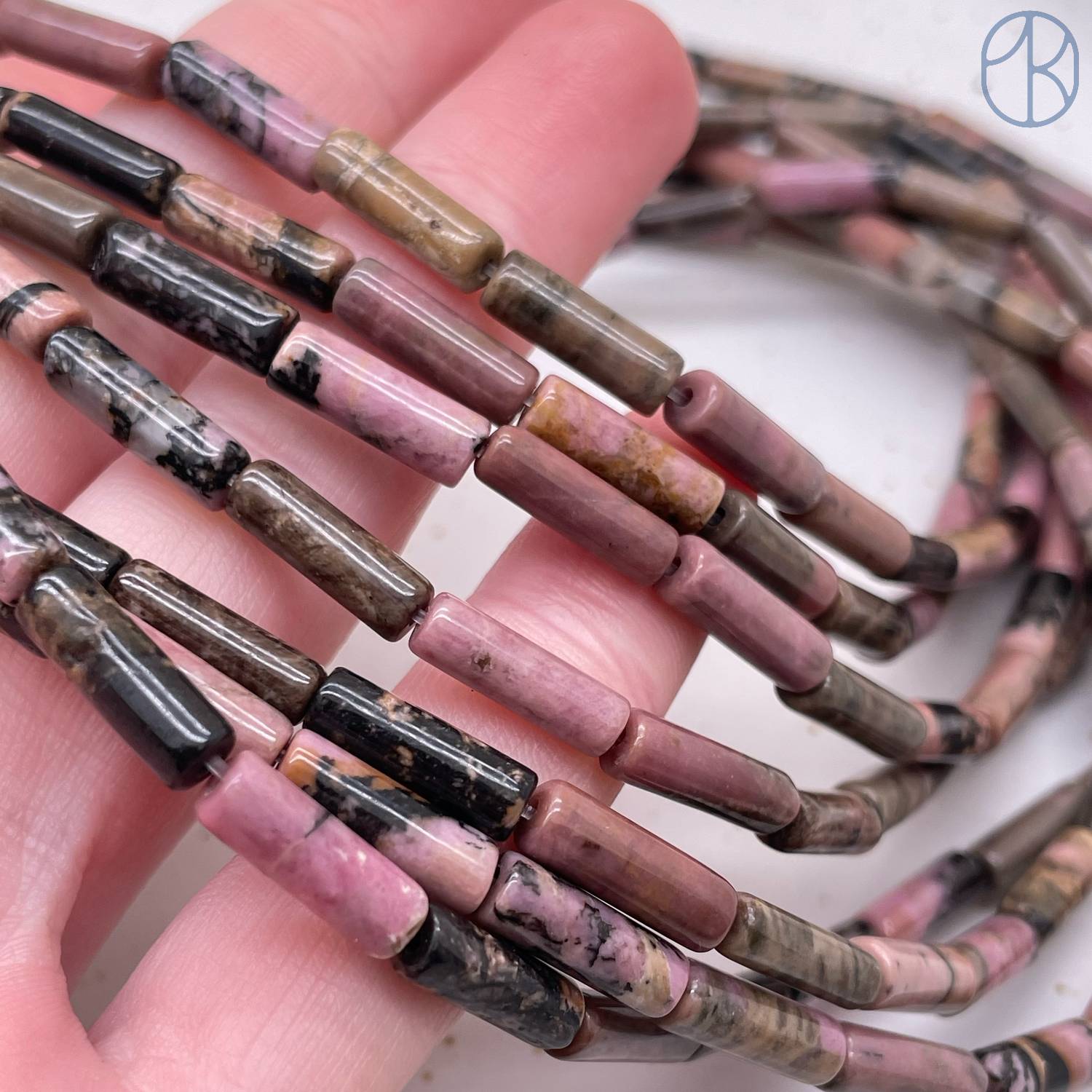 Родонит черно-розовый трубочки 13х4 мм
