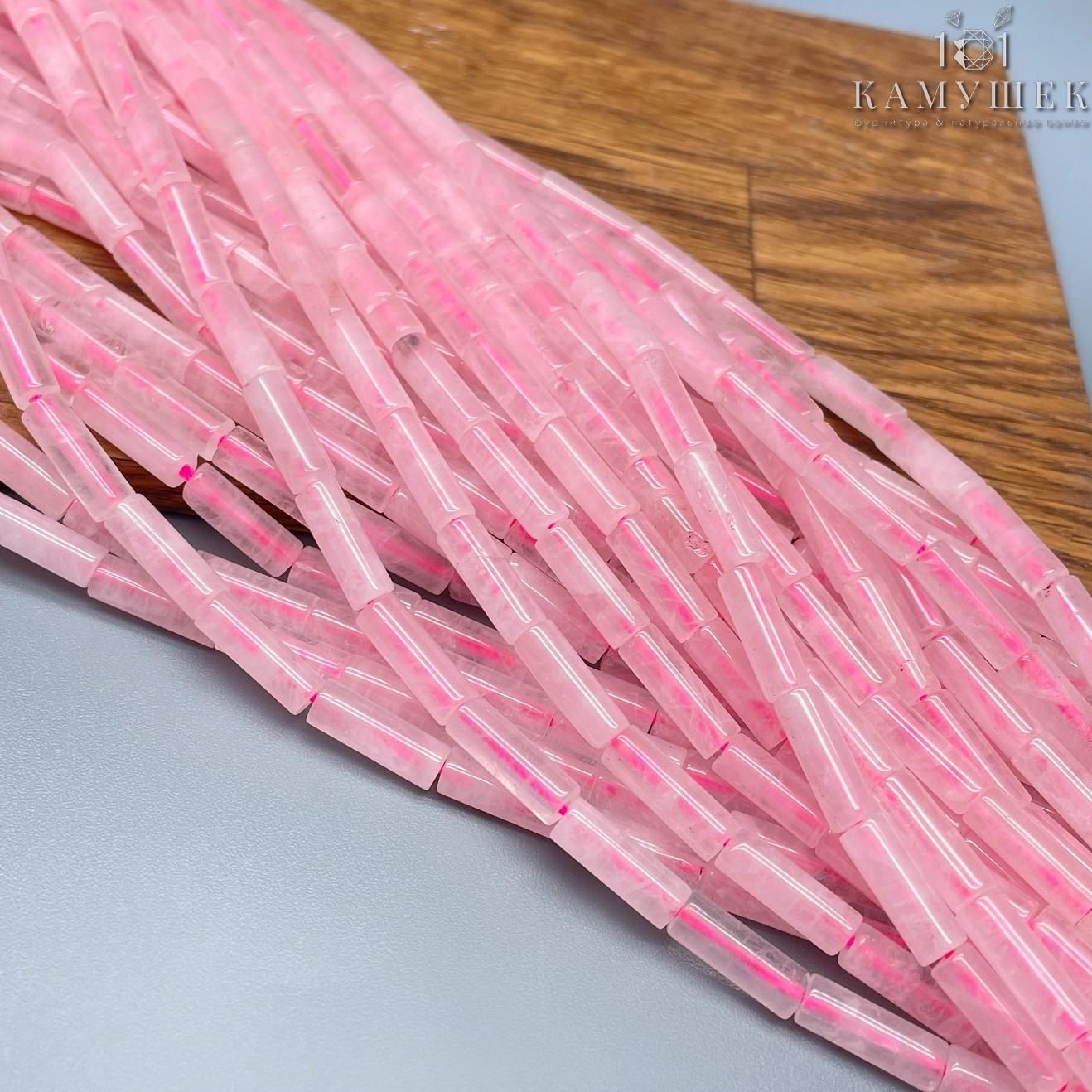 Розовый кварц трубочки 13х4 мм