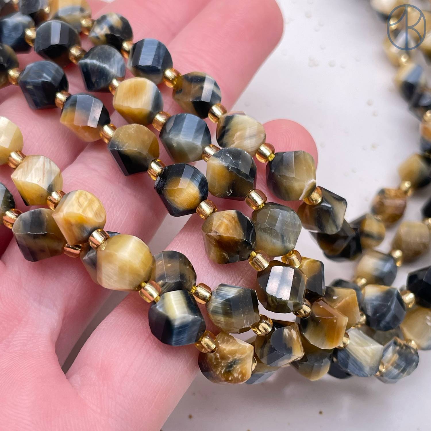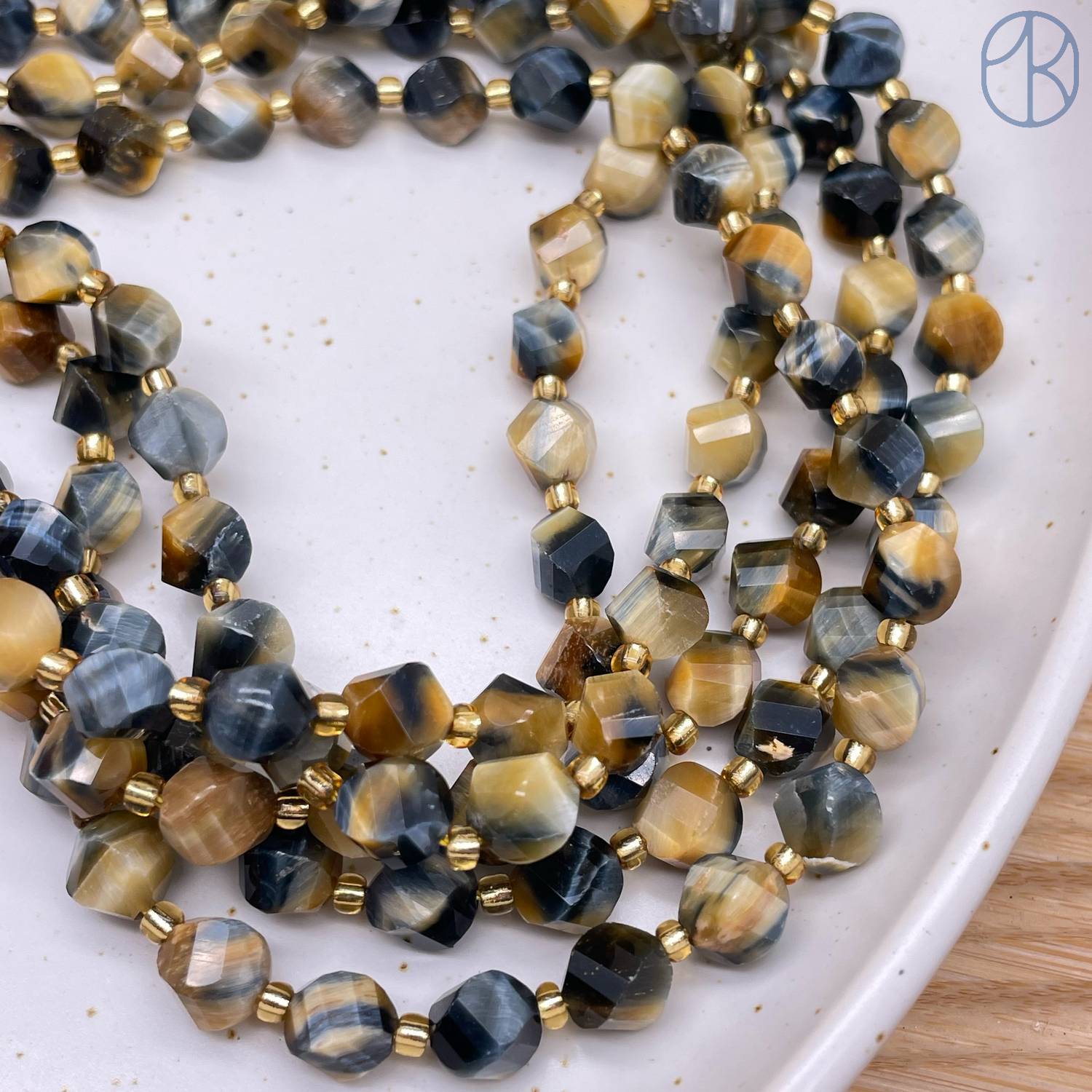 Микс глаз крученая огранка 8 мм (тигровый и соколиный)