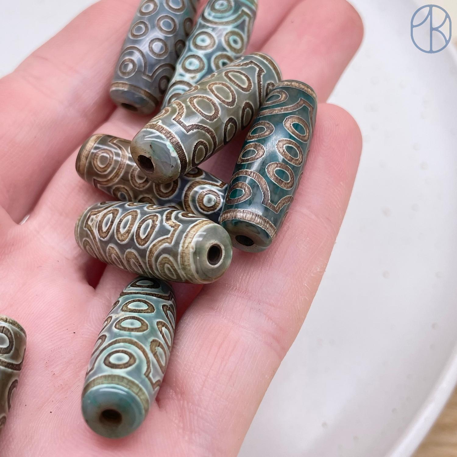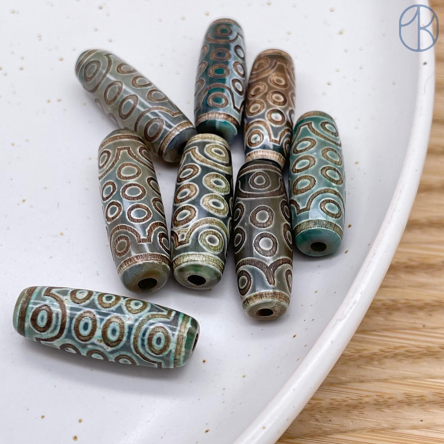 Бусина Дзи 21 глаз серо-зеленый бочонок 30х11 мм