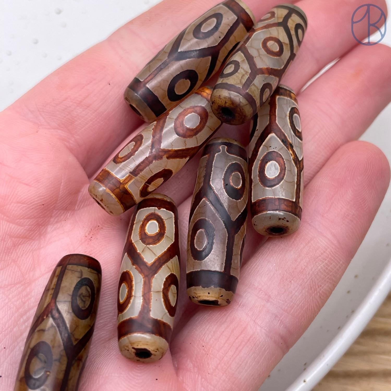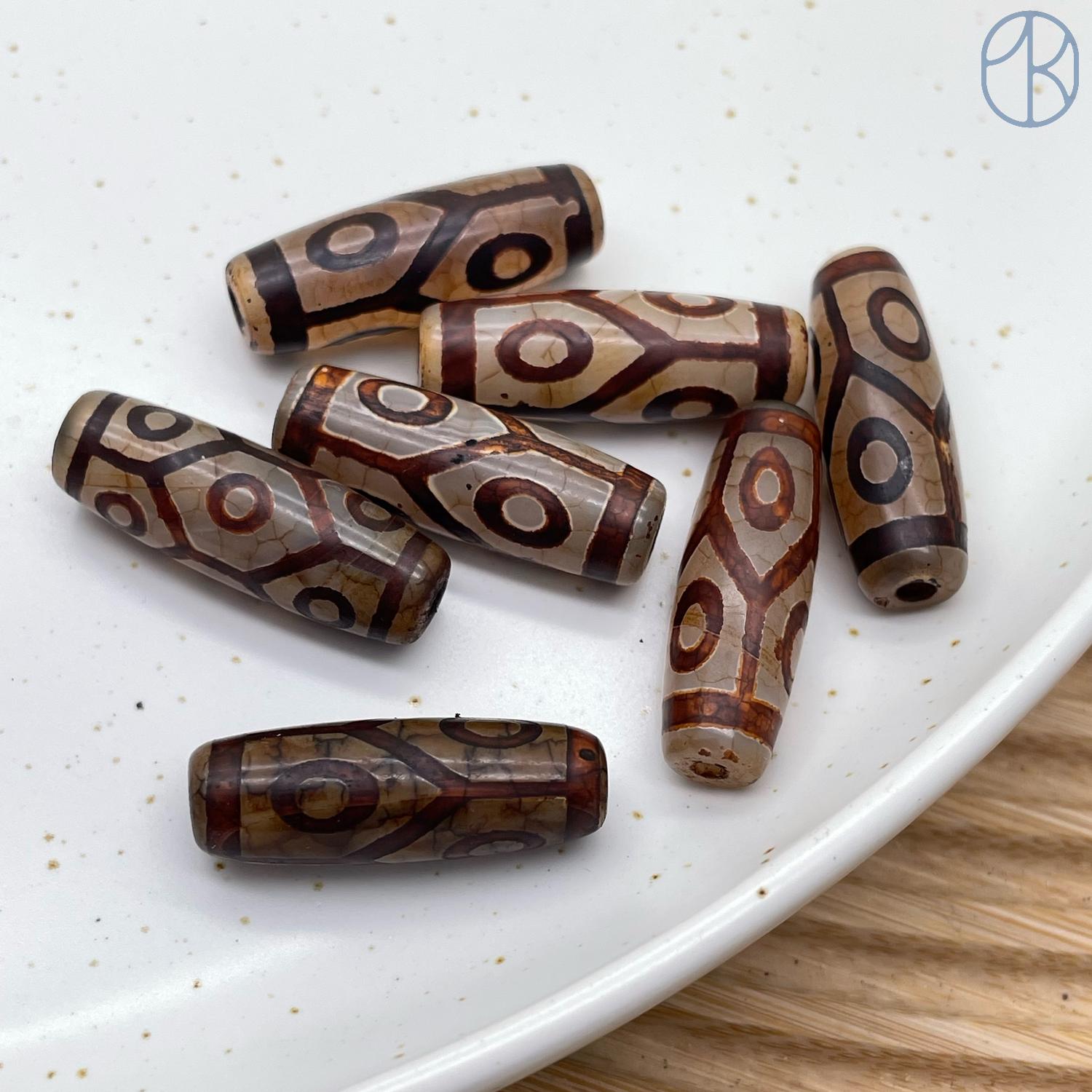 Бусина Дзи 6 глаз и черепаший панцирь серо-коричневый бочонок 30х11 мм
