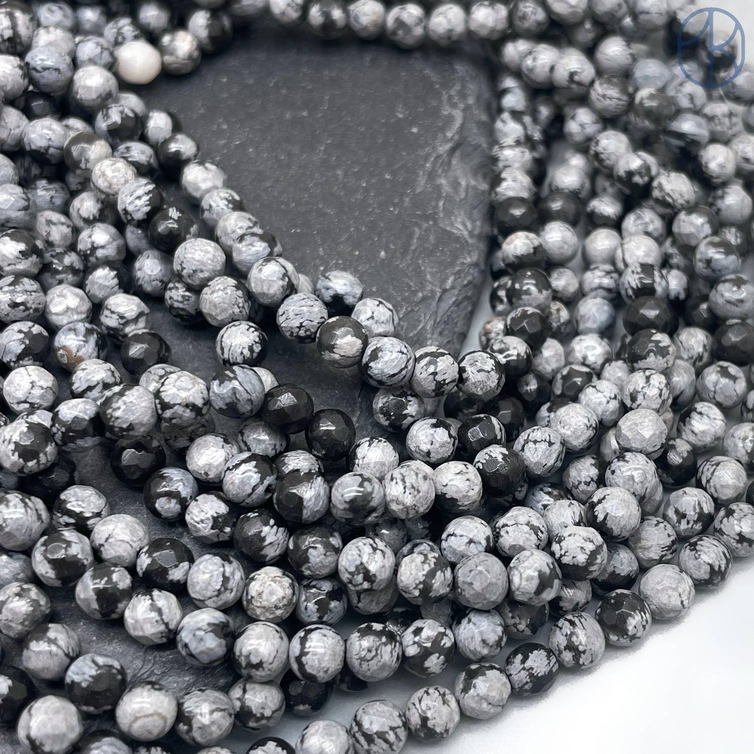 Обсидиан снежный мелкая огранка 4 мм (128 граней)