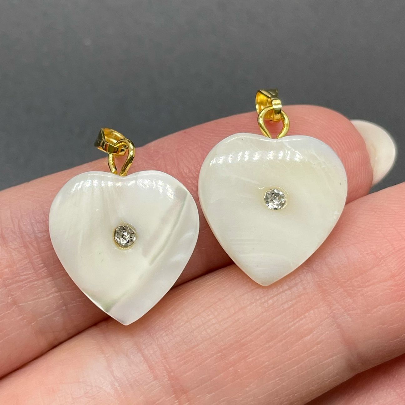 15*15мм,цвет Золото, Подвеска перламутр сердце циркон белый