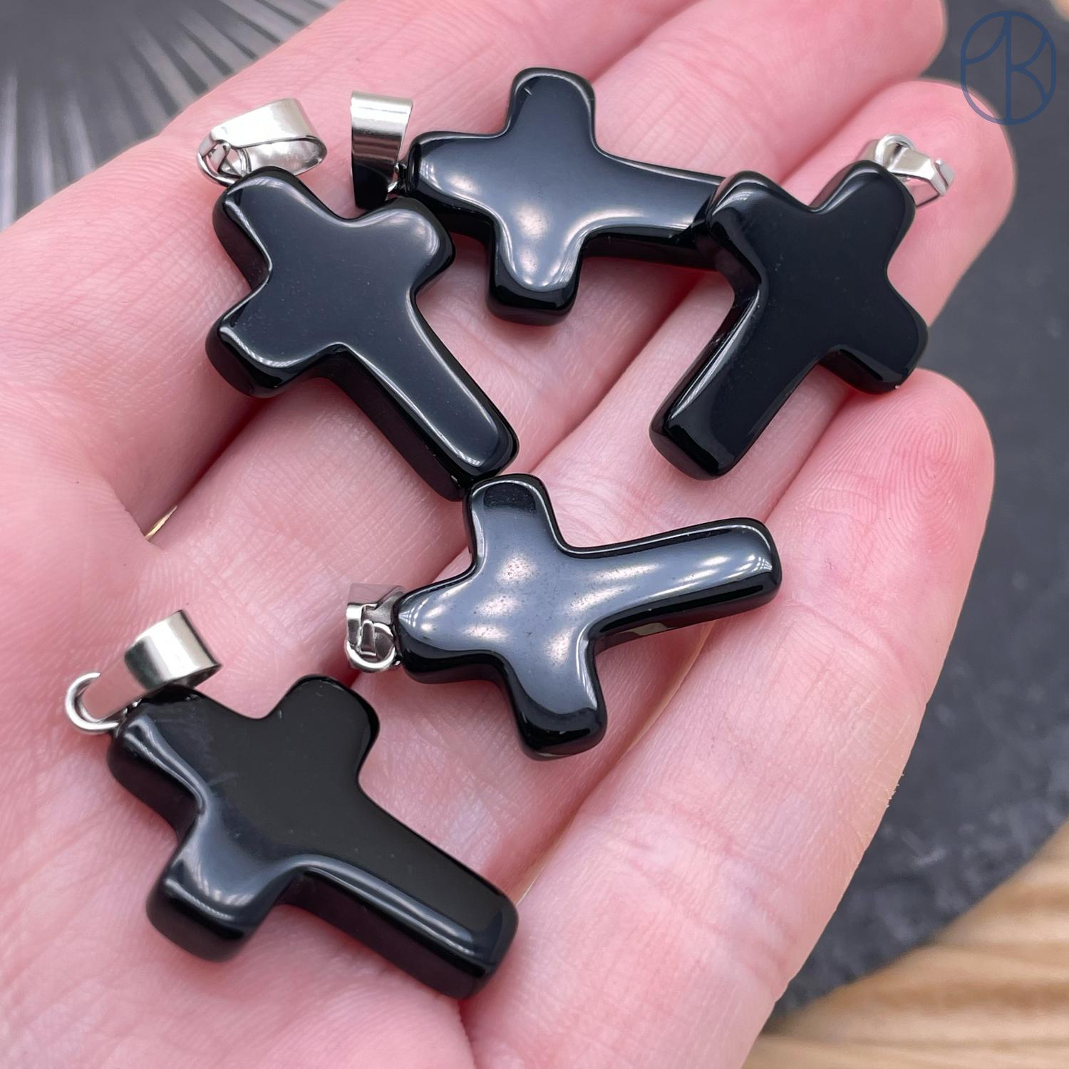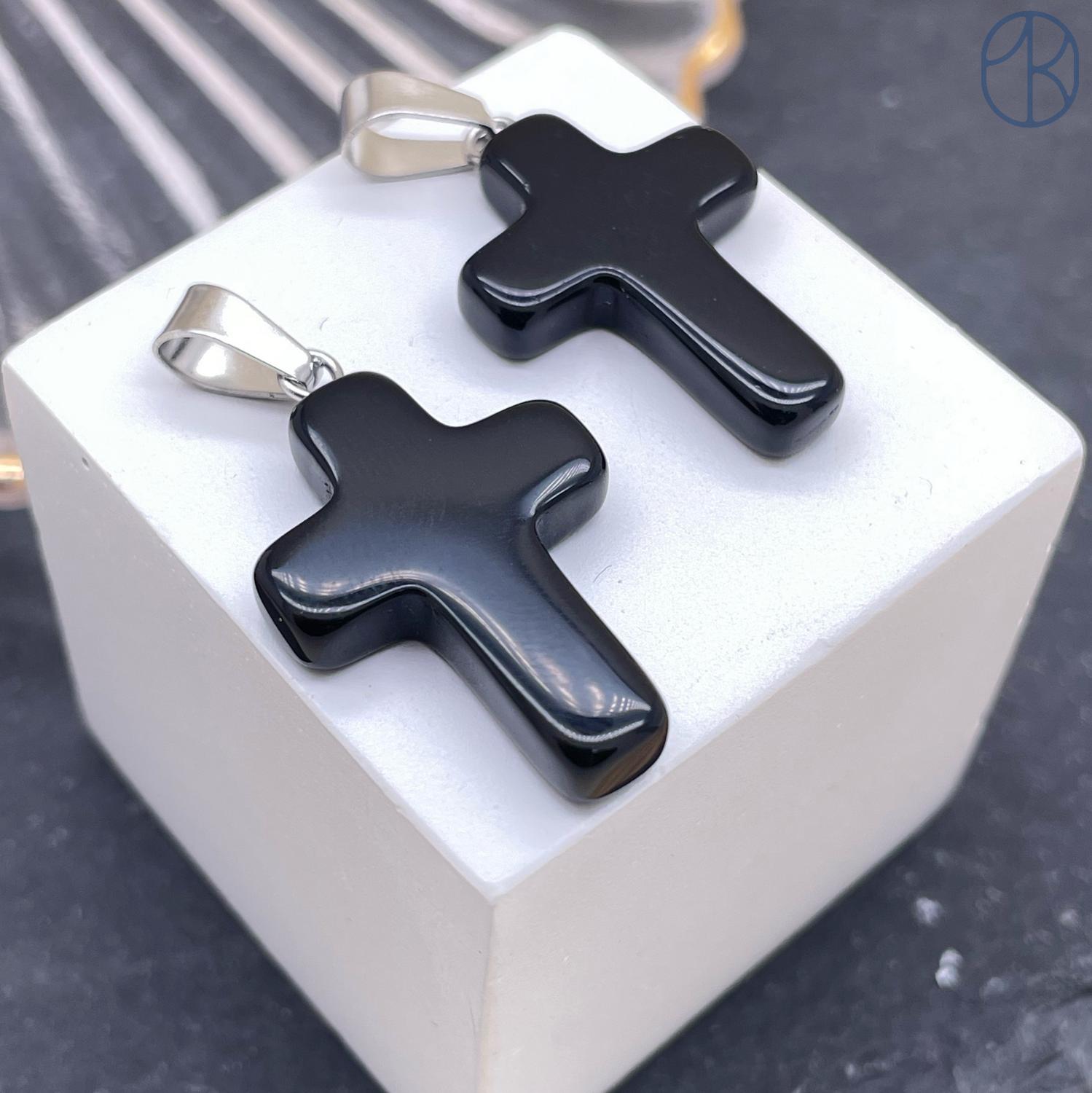 Подвеска крест Агат черный, цвет серебро 26х18 мм