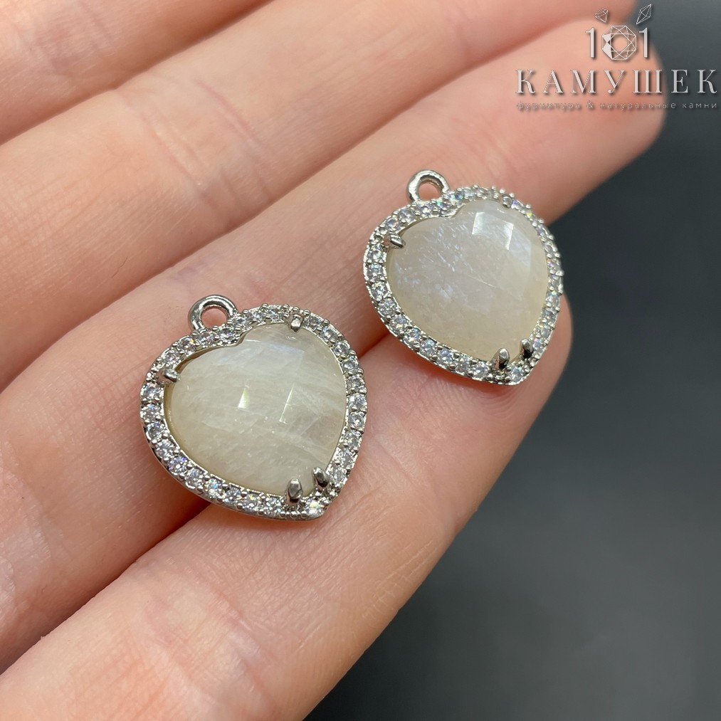 Подвеска сердце огранка цирконы лунный камень, цвет серебро 16х18 мм