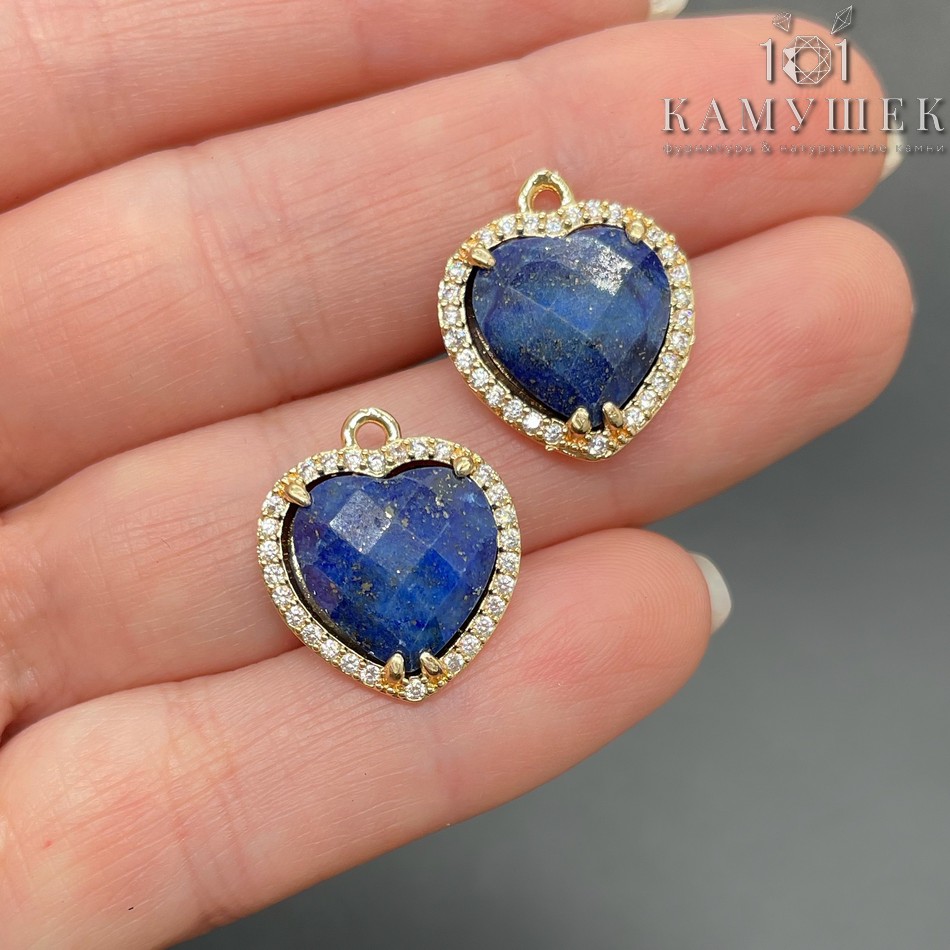 Подвеска сердце огранка цирконы лазурит, цвет золото 16х18 мм