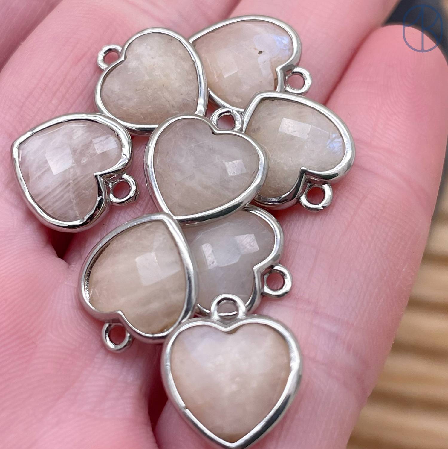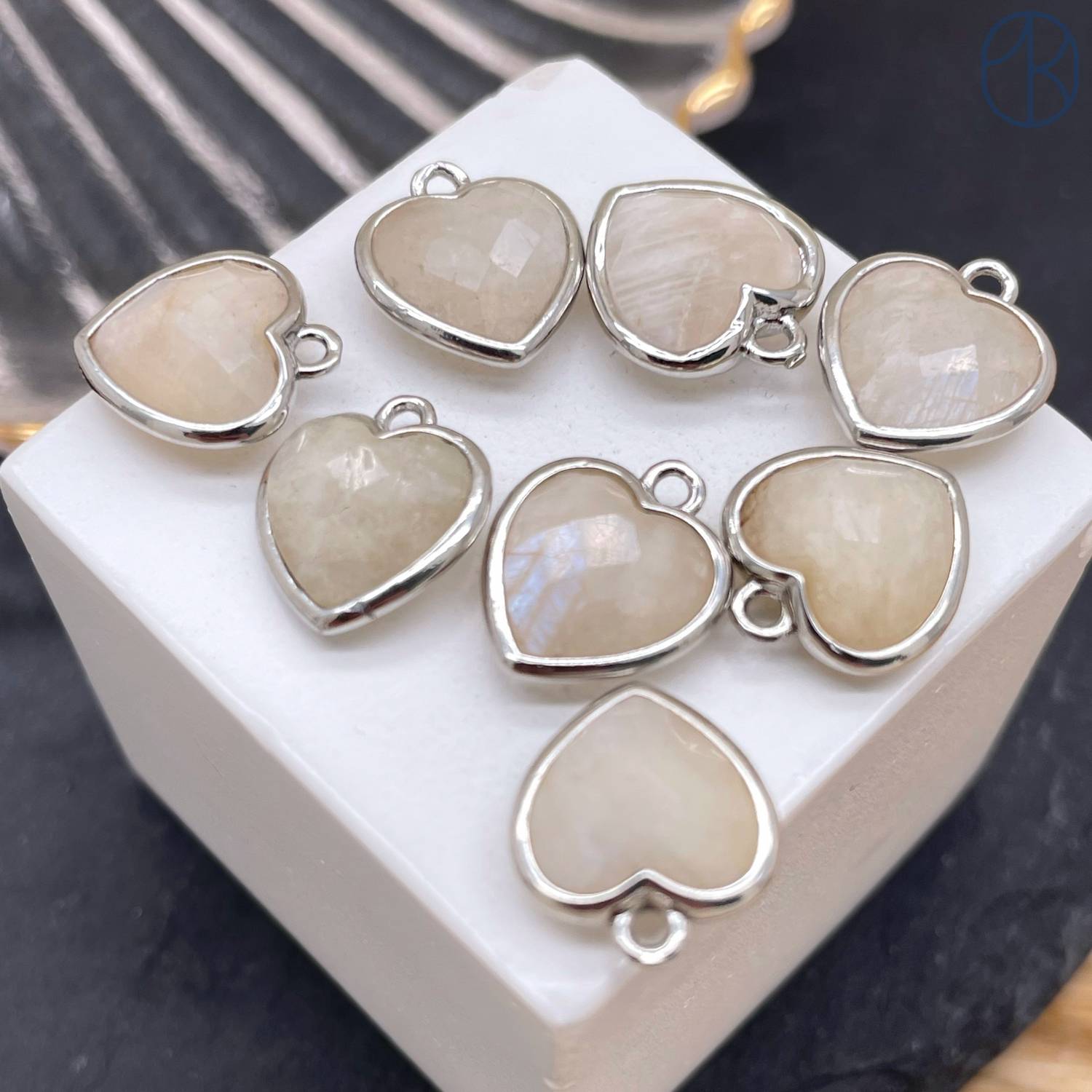 Подвеска сердце лунный камень огранка, цвет серебро 12х13 мм