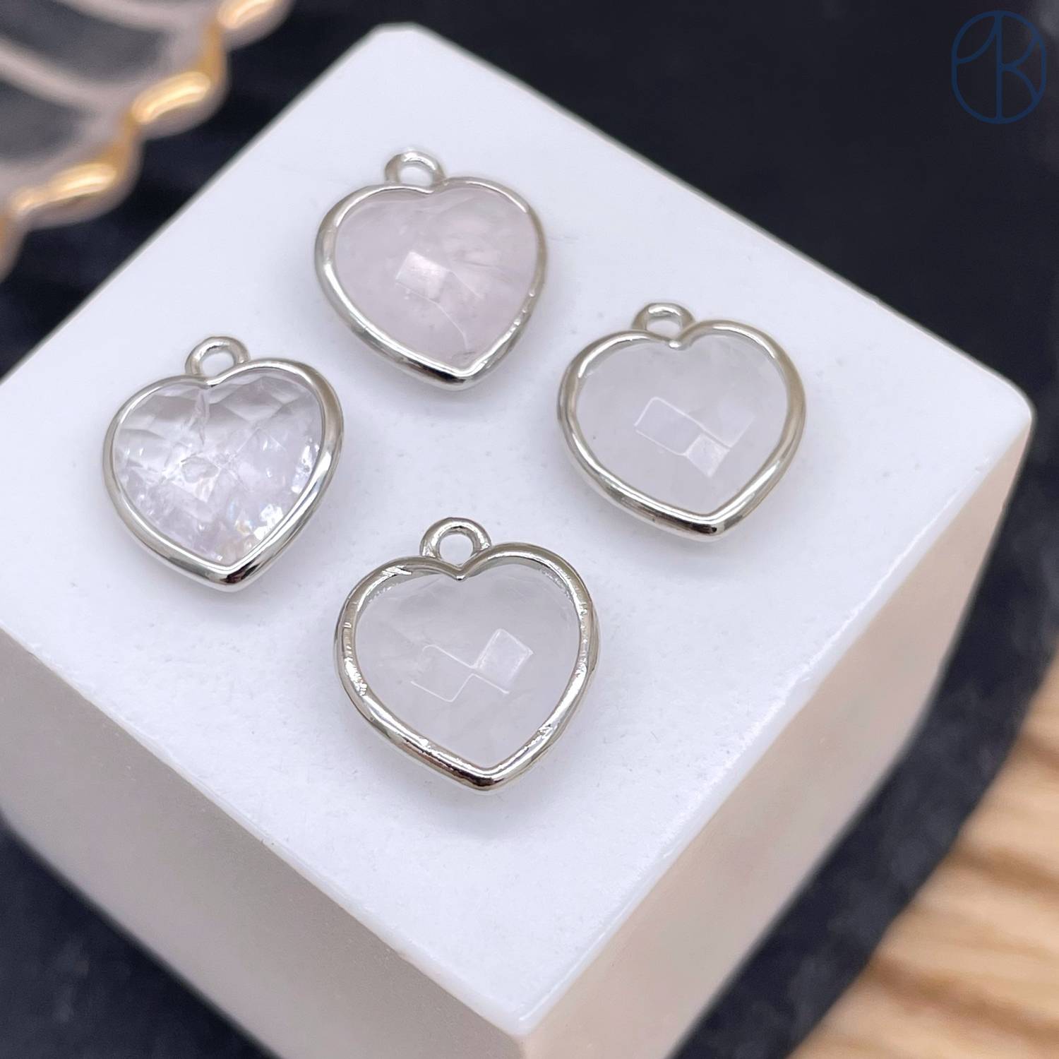 Подвеска сердце горный хрусталь огранка, цвет серебро 12х13 мм