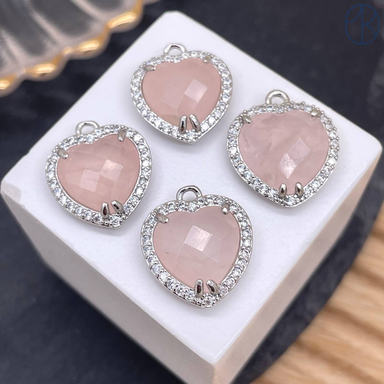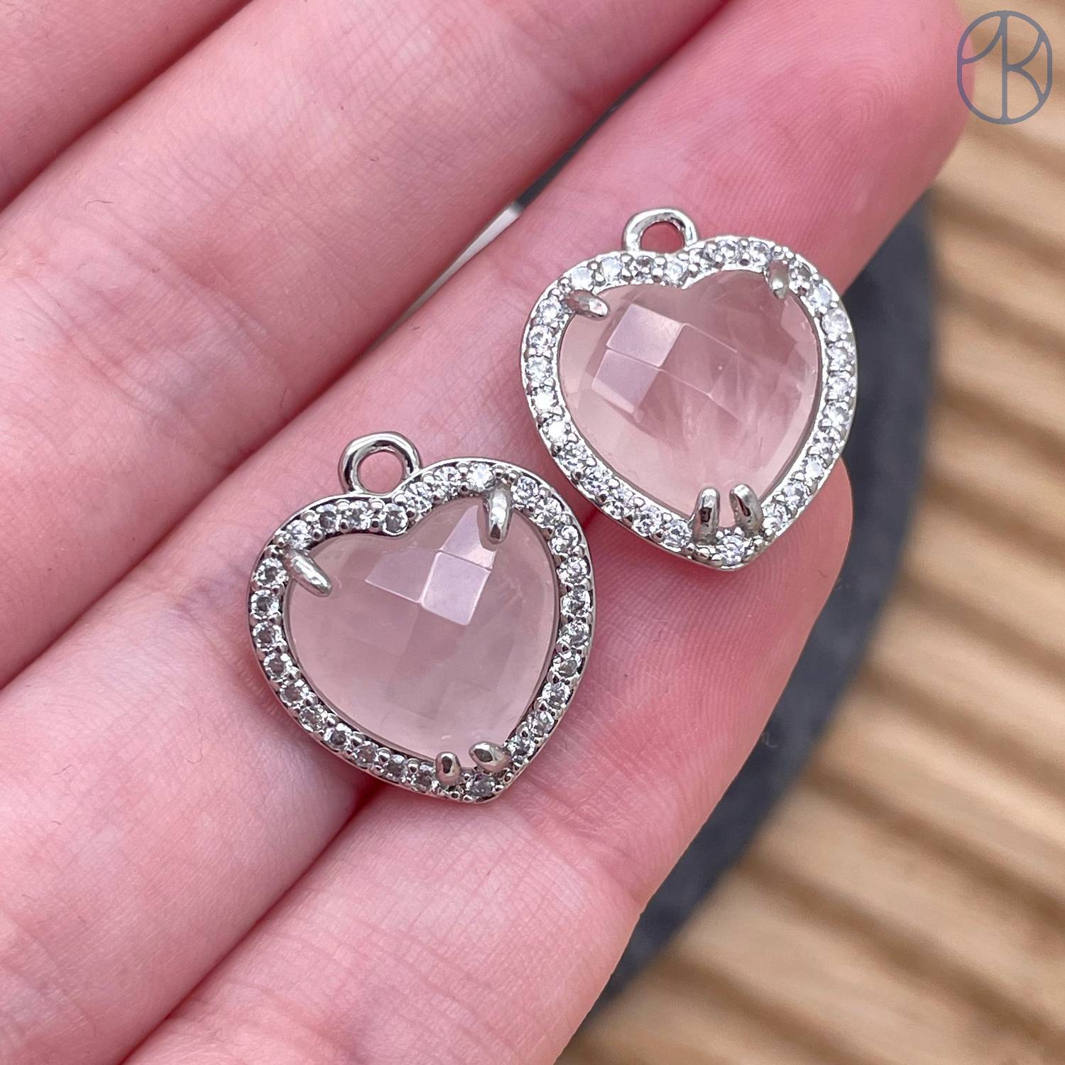Подвеска сердце огранка цирконы розовый кварц, цвет серебро 16х18 мм