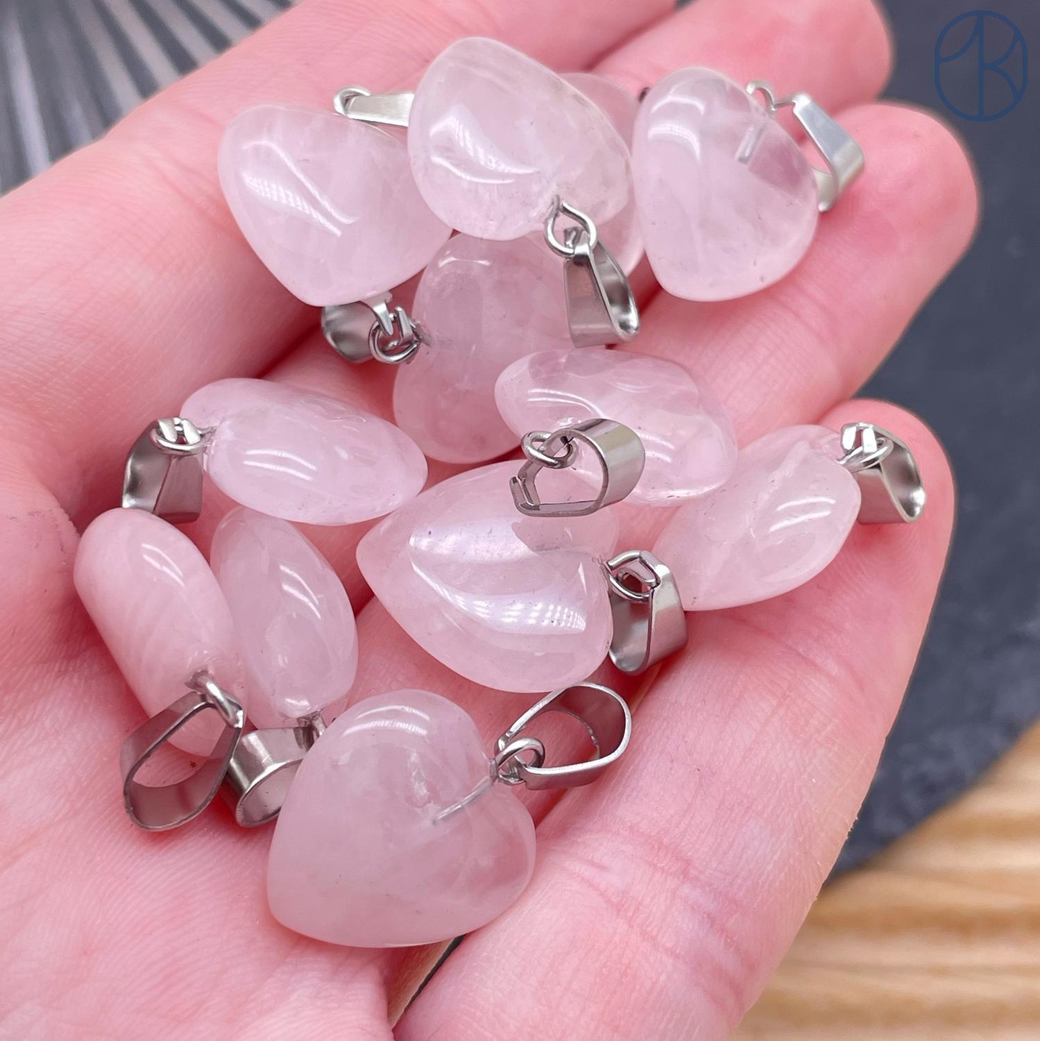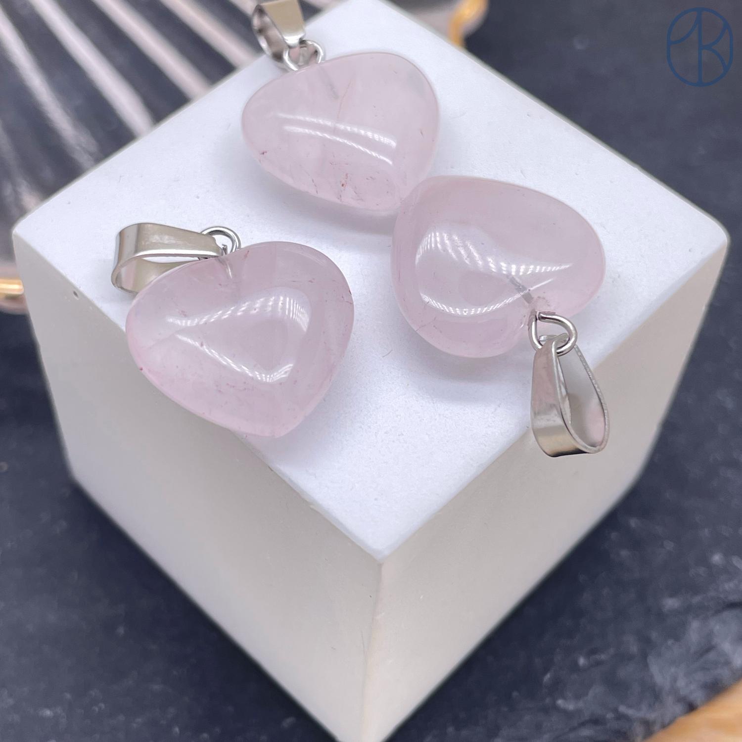 Подвеска Сердце Розовый кварц, цвет серебро 16х16 мм