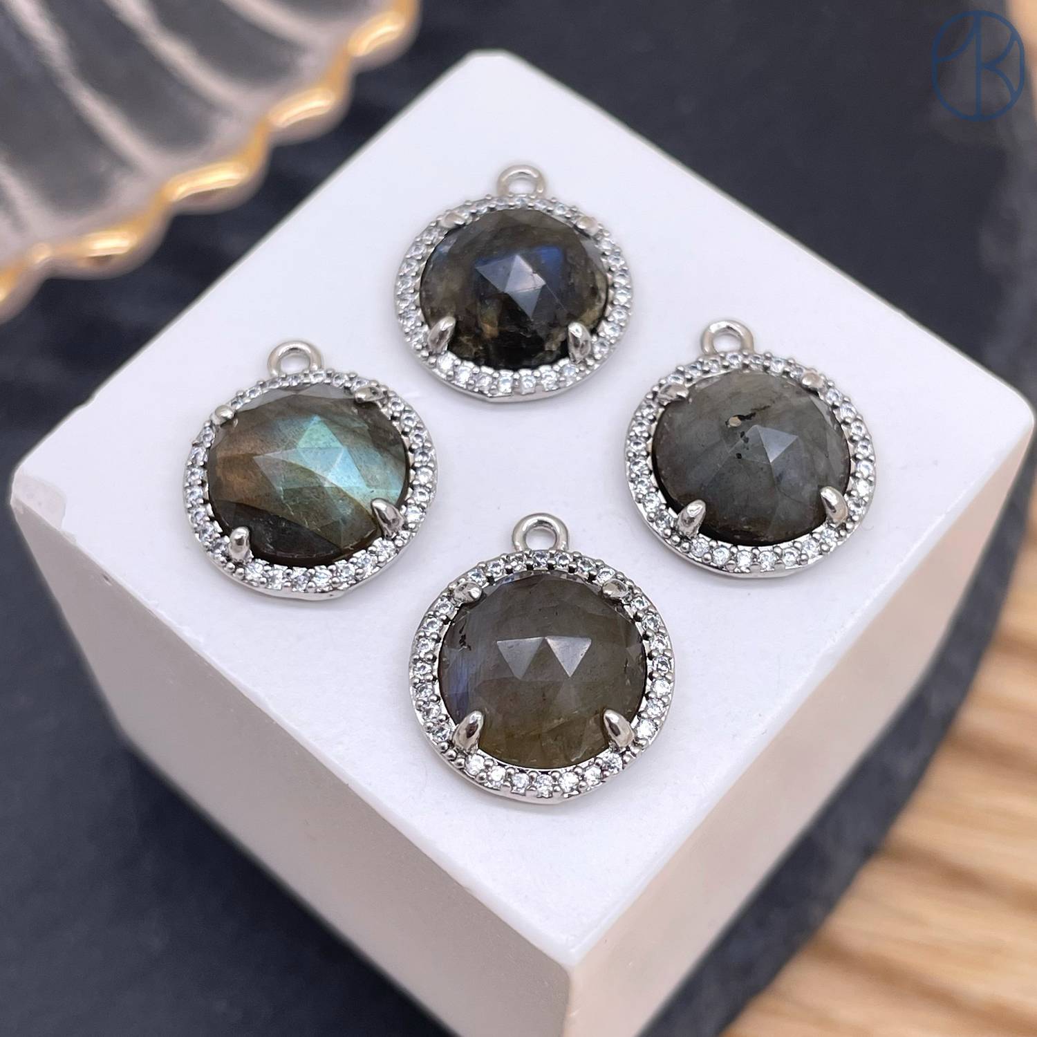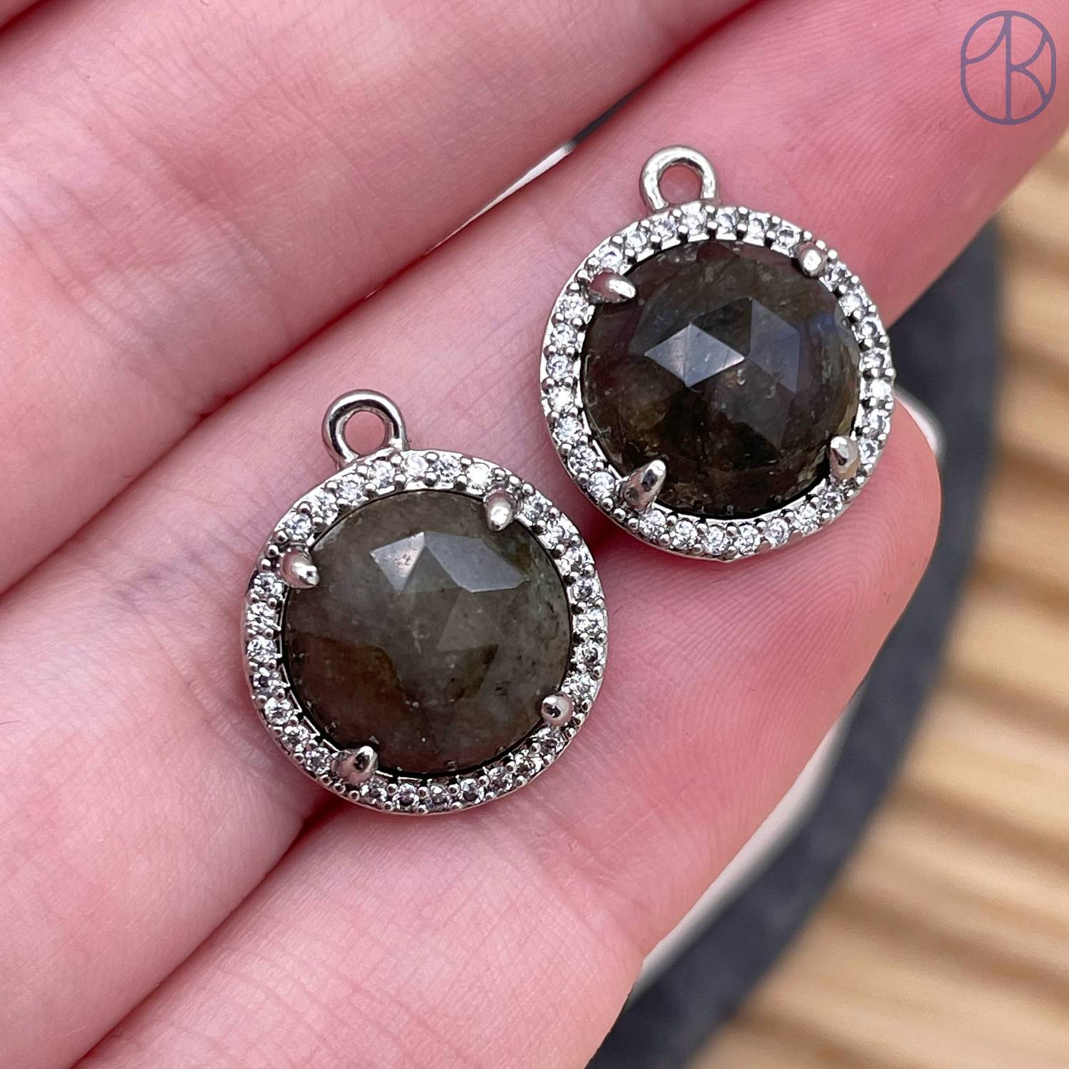 Подвеска круг огранка цирконы лабрадор, цвет серебро 13 мм