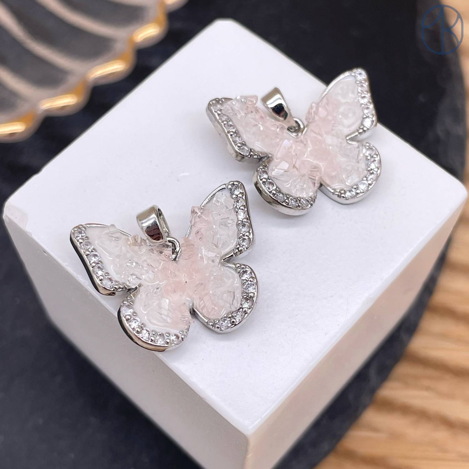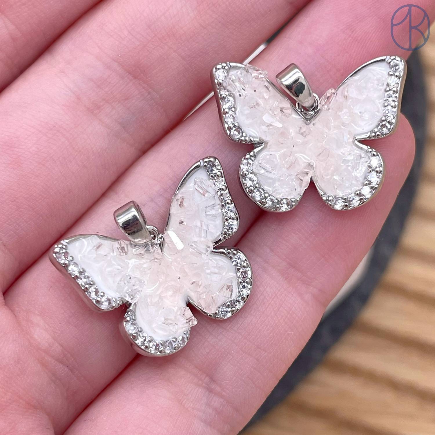 Подвеска бабочка с сахарным эффектом цирконы, цвет серебро 17 мм