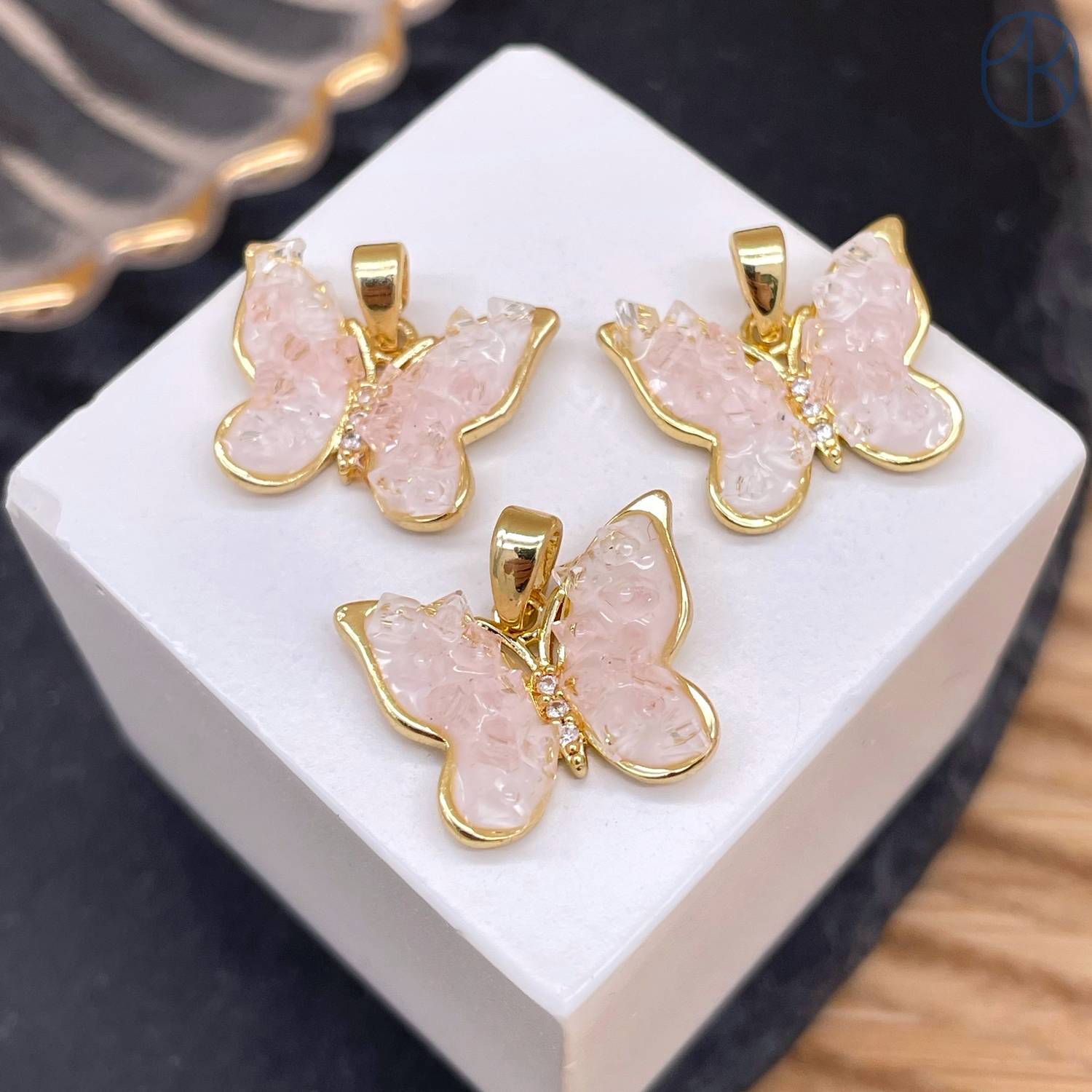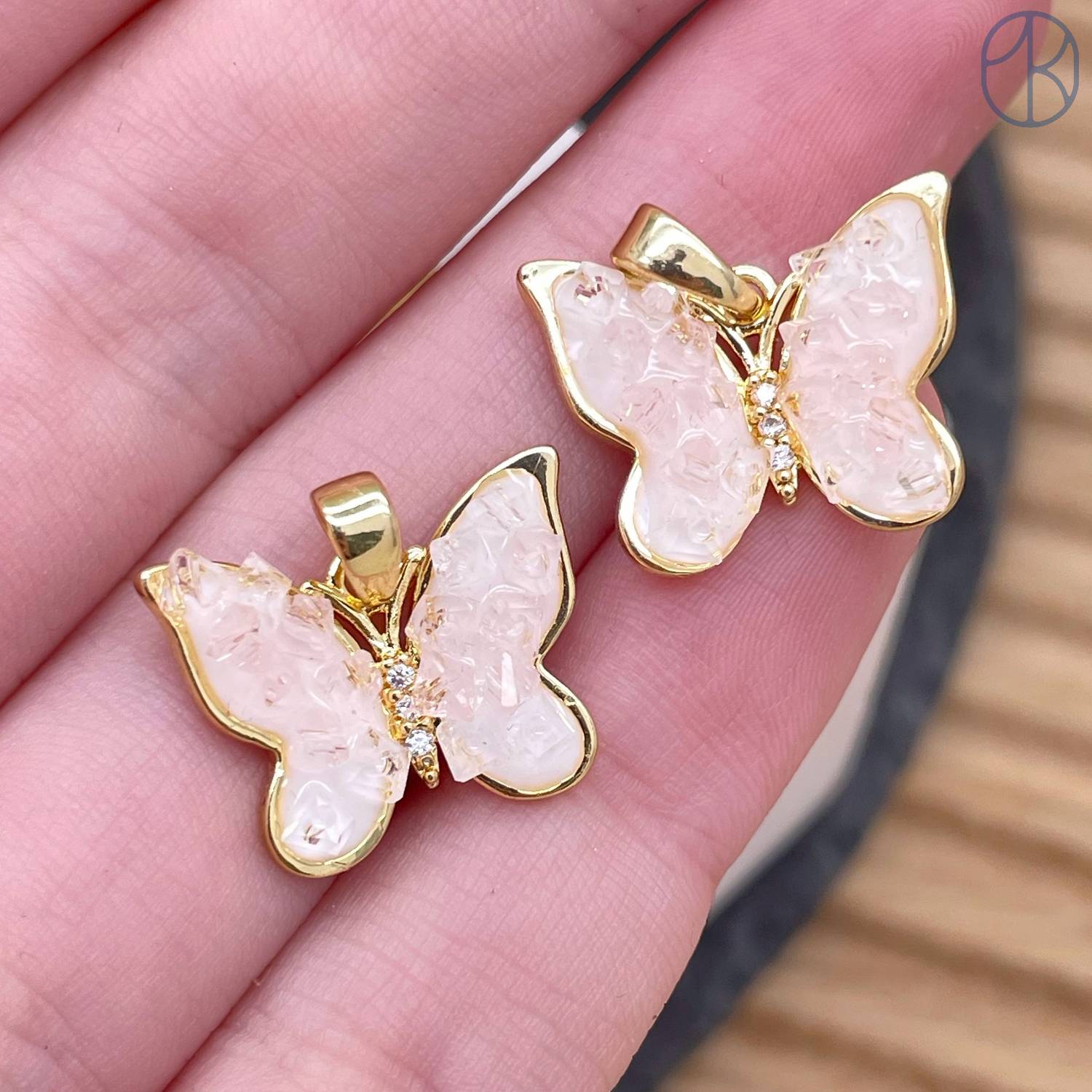Подвеска бабочка с сахарным эффектом цирконы, цвет золото 14 мм