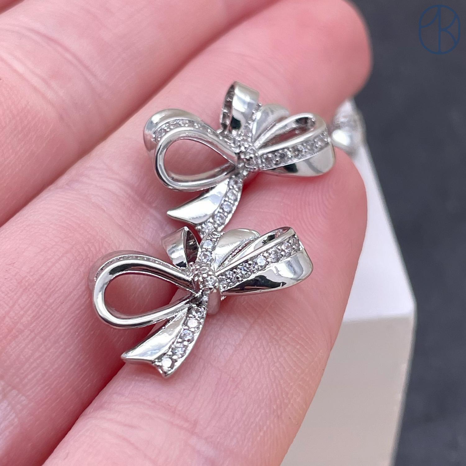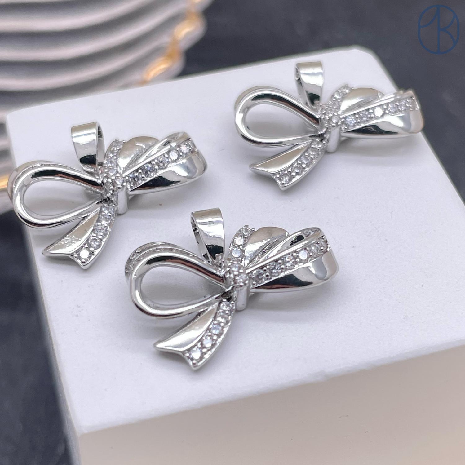 Подвеска бант цирконы, цвет серебро 18х12 мм
