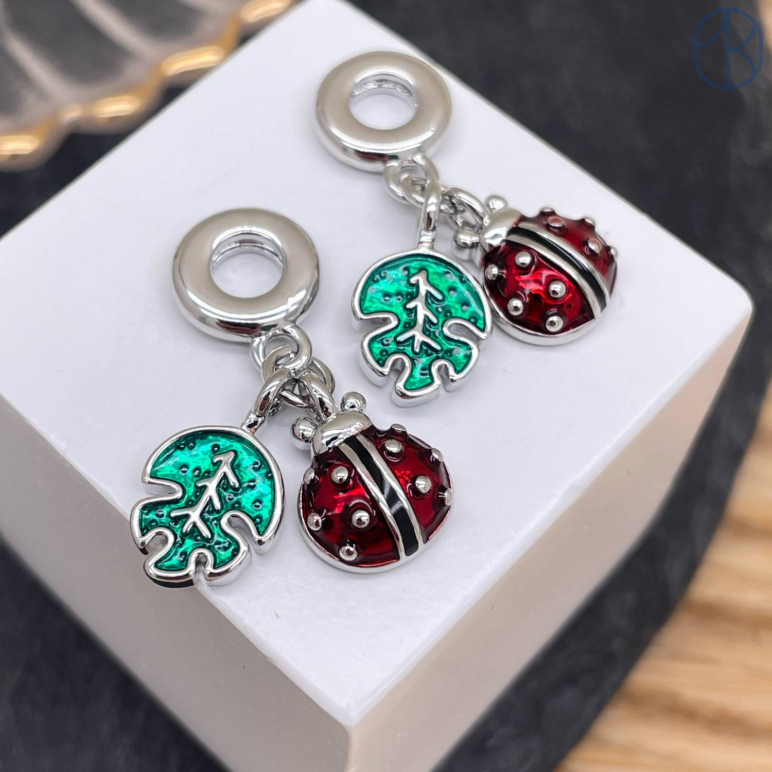 Подвеска Божья коровка и монстера, цвет серебро 16 мм