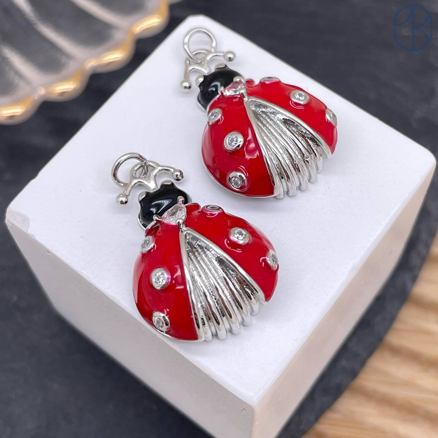 Подвеска божья коровка цирконы, цвет серебро 23 мм