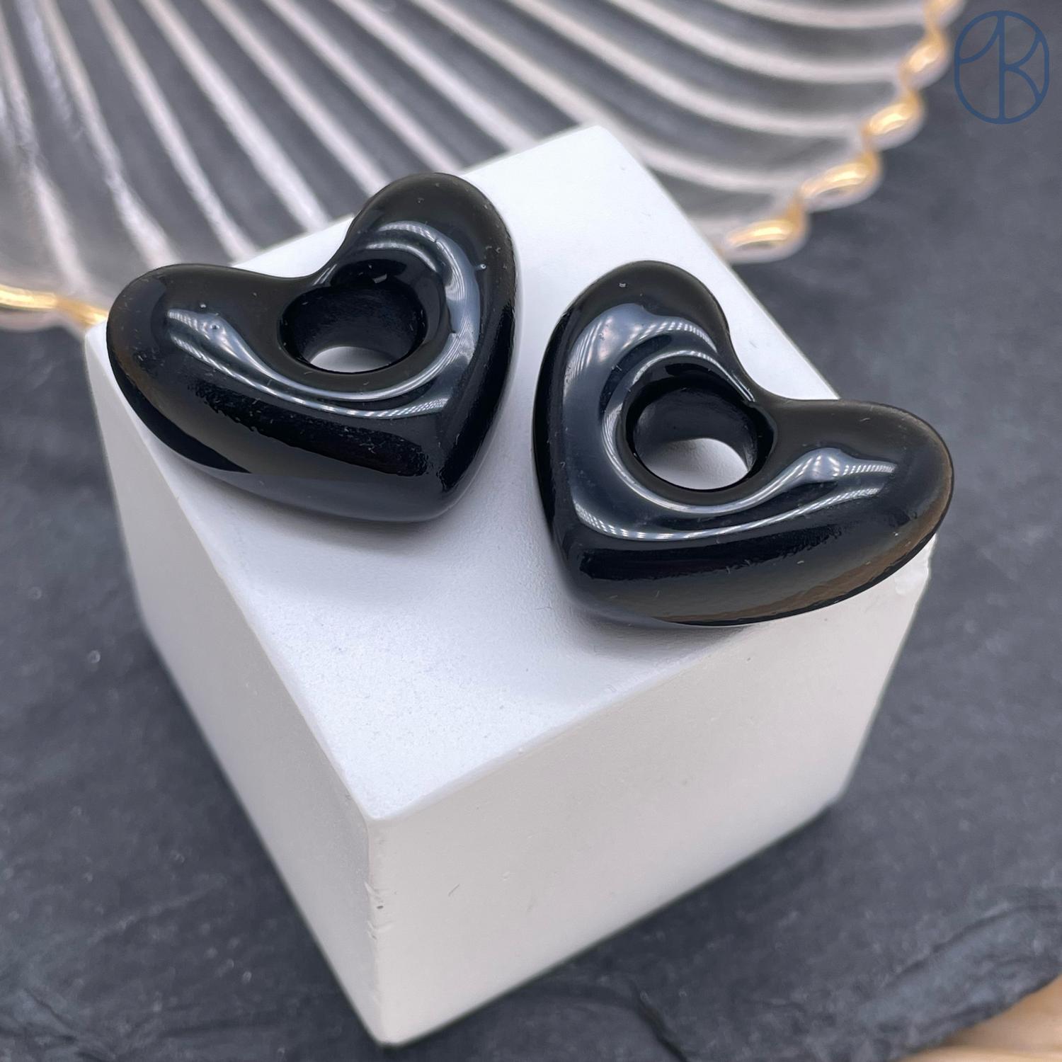 Подвеска бублик сердце черная эмаль 21х25 мм