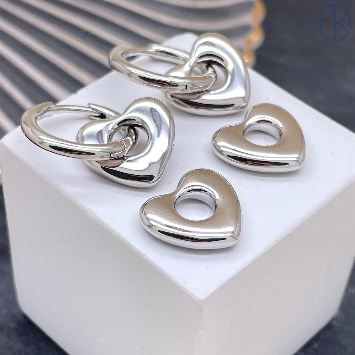 Подвеска бублик сердце, цвет серебро 13х14 мм
