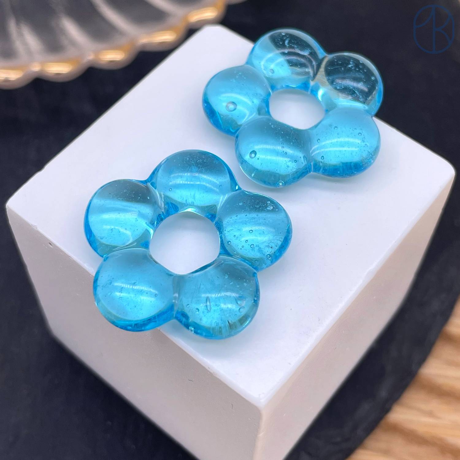 Подвеска бублик цветок №1 темно-голубой 24 мм