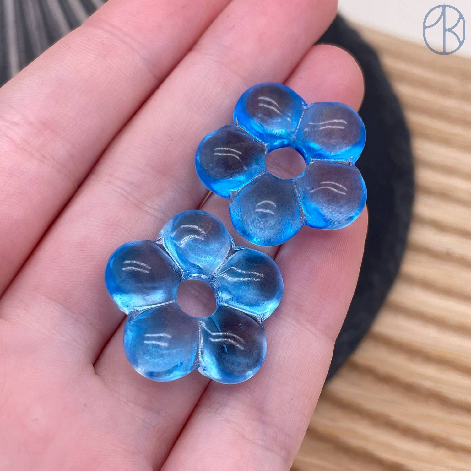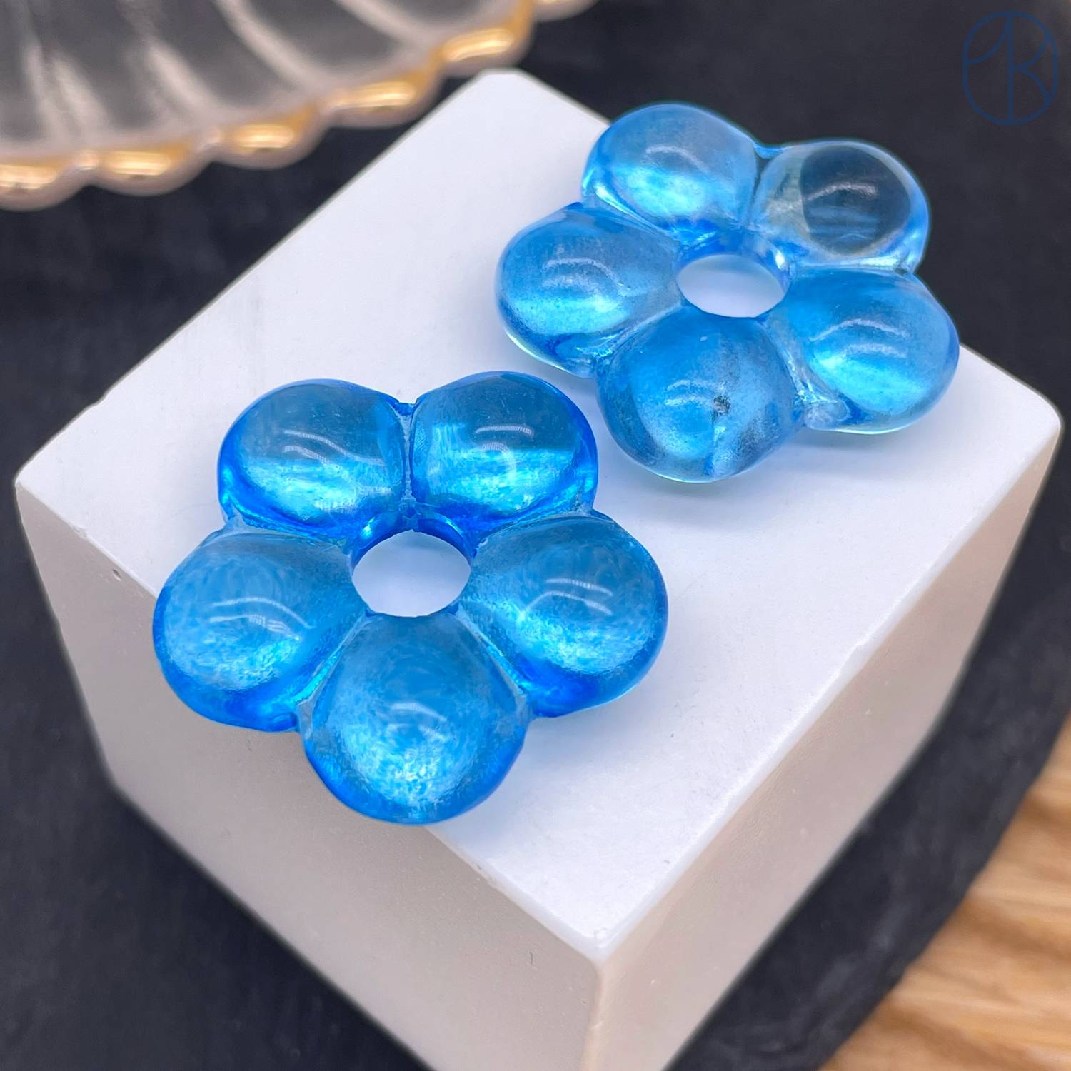Подвеска бублик цветок №1 темно-голубой 24 мм