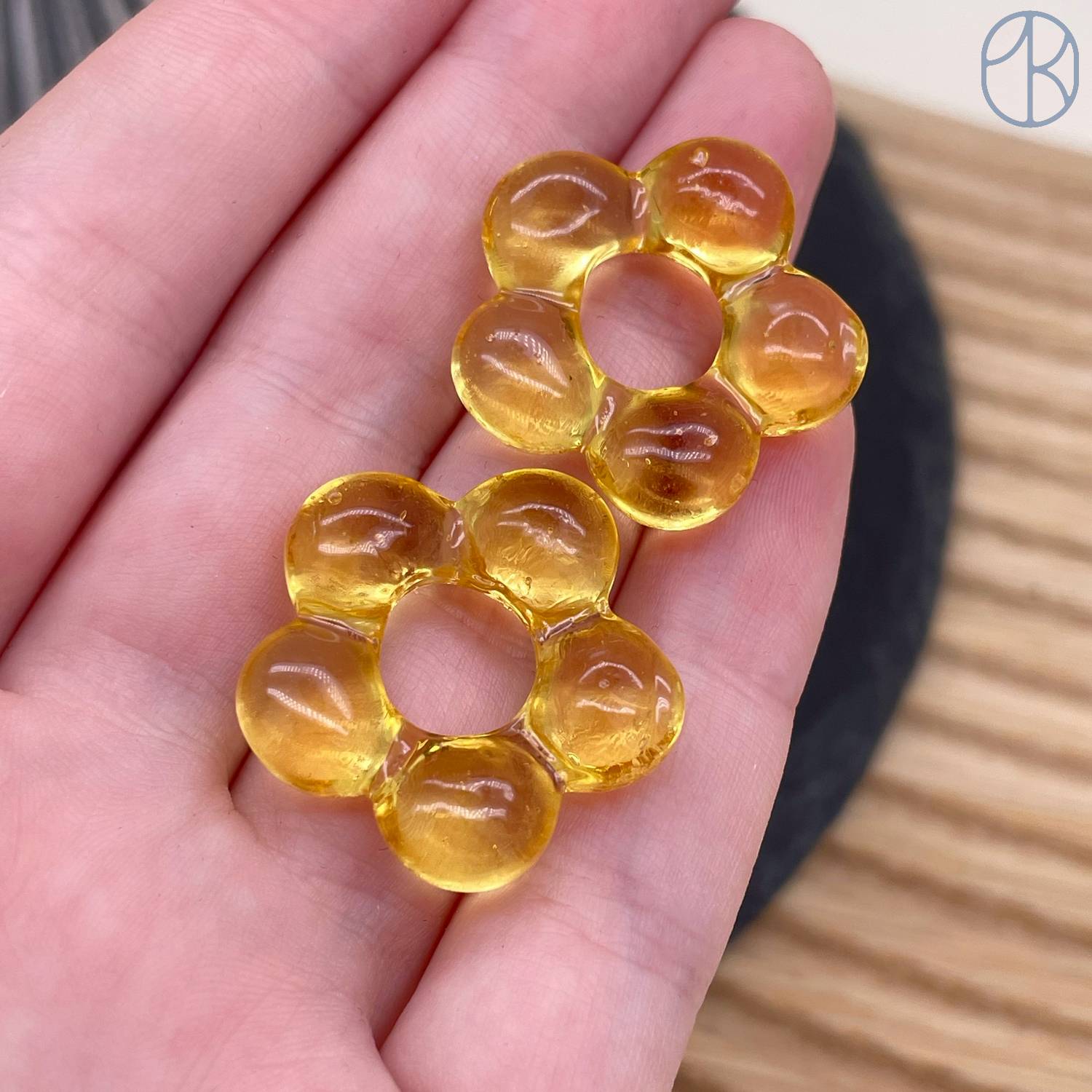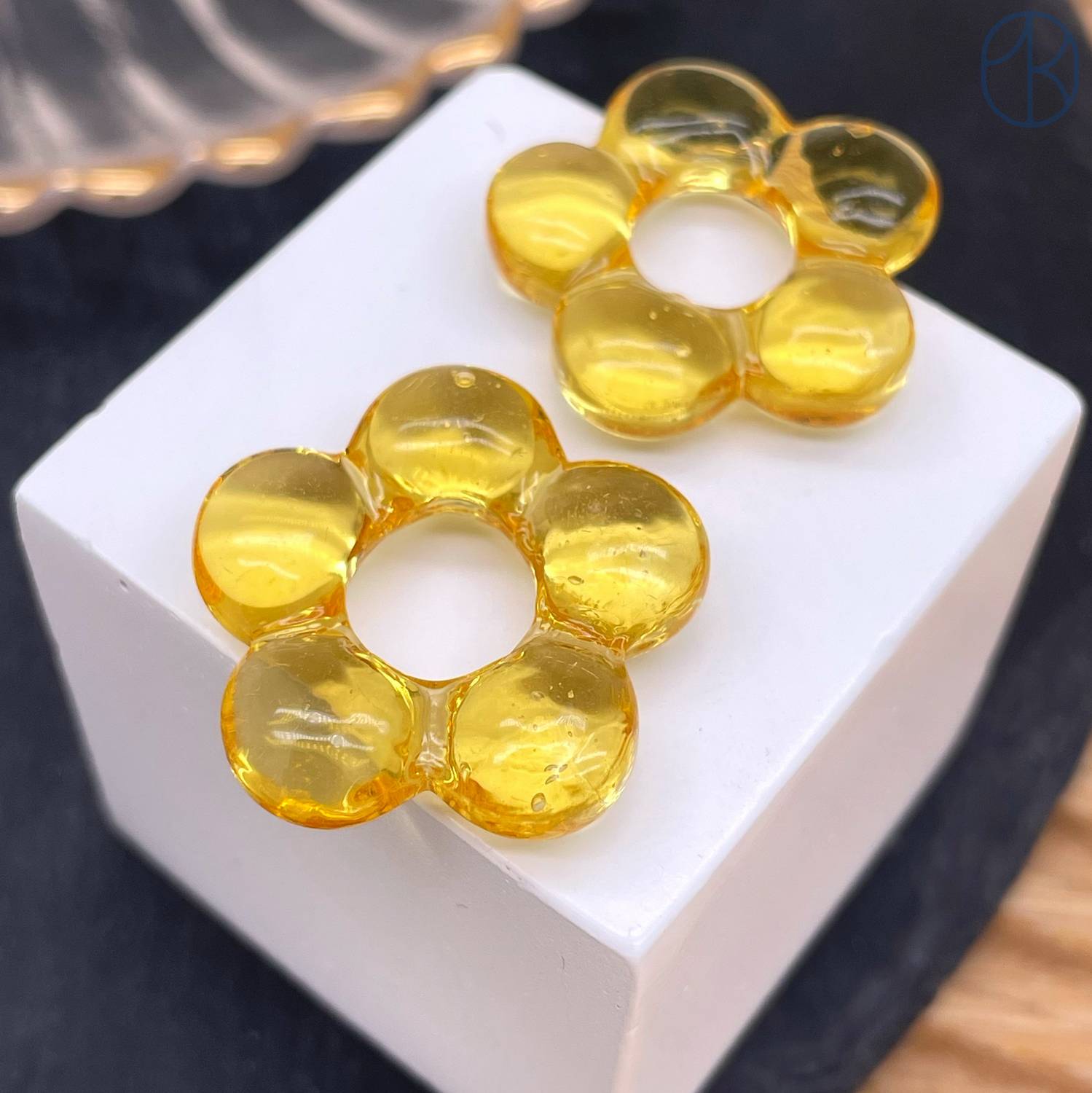 Подвеска бублик цветок №1 темно-желтый 24 мм