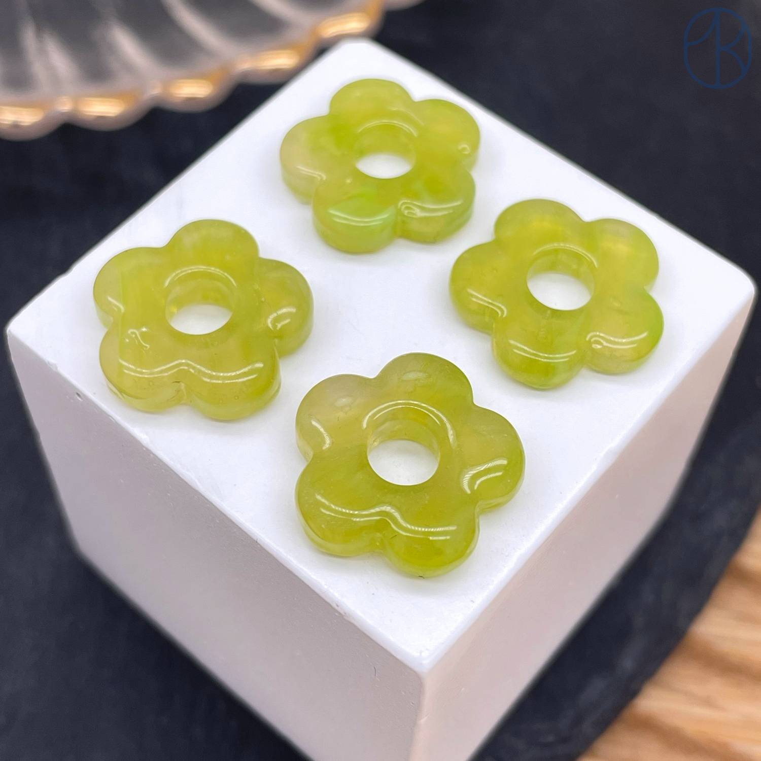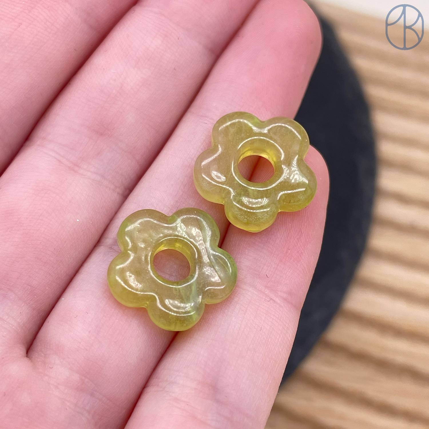 Подвеска бублик цветок бело-желтый 16 мм