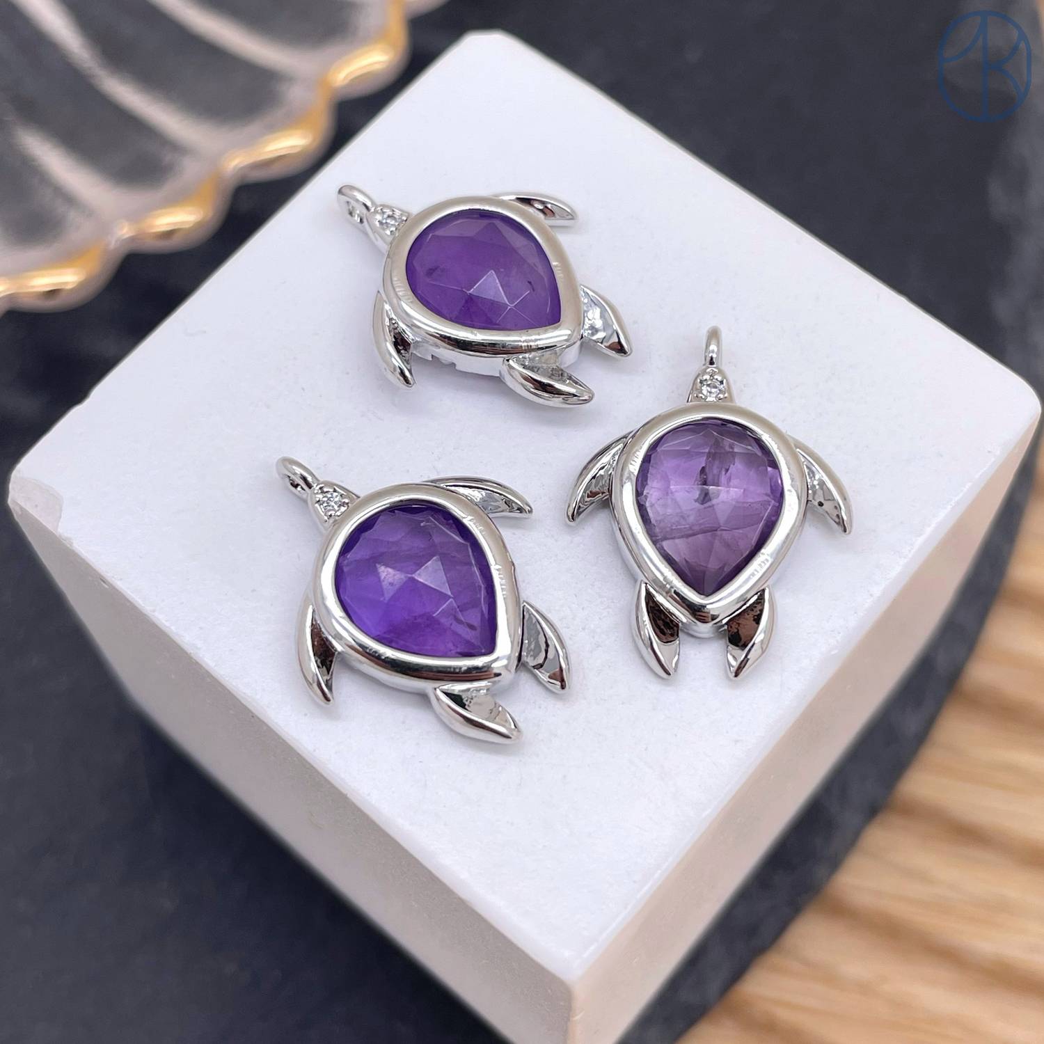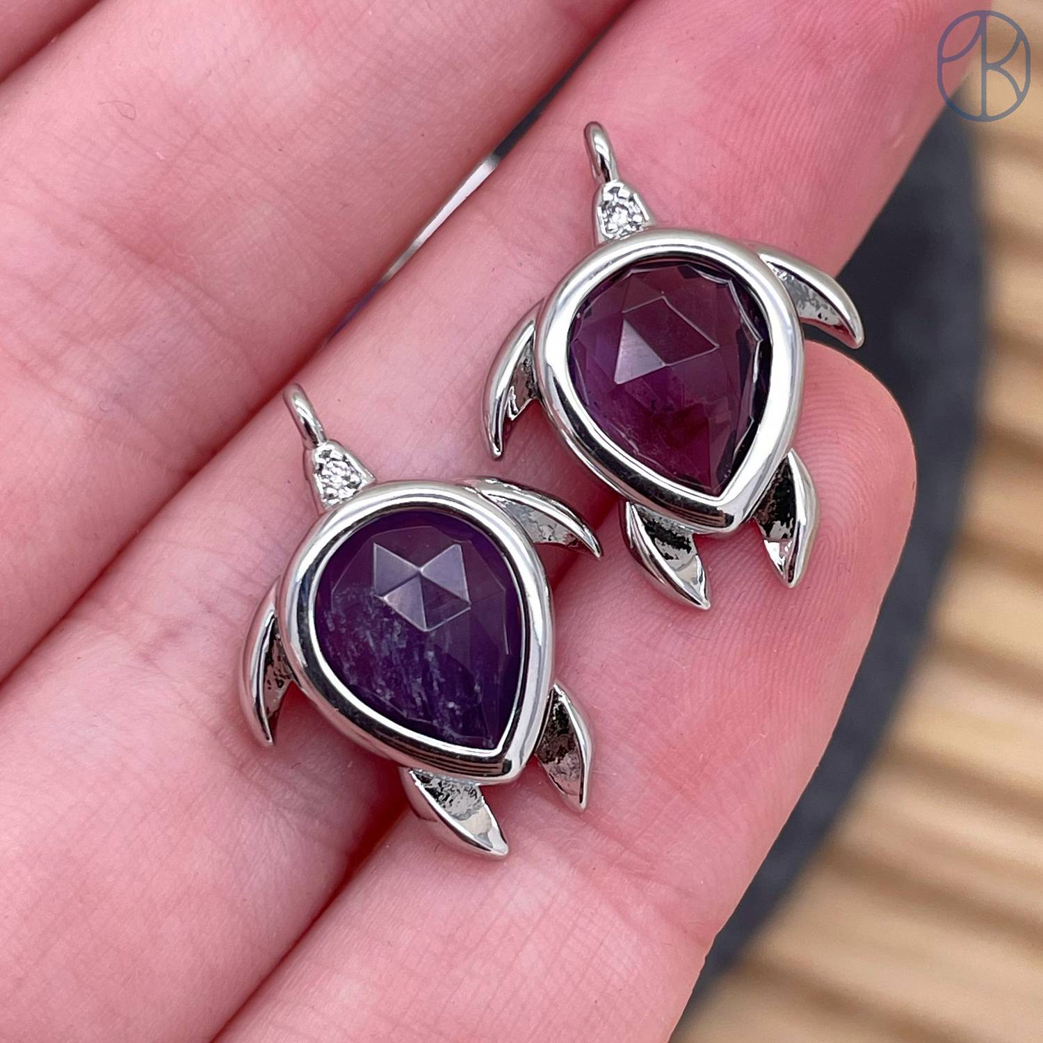 Подвеска черепаха огранка аметист, цвет серебро 15 мм