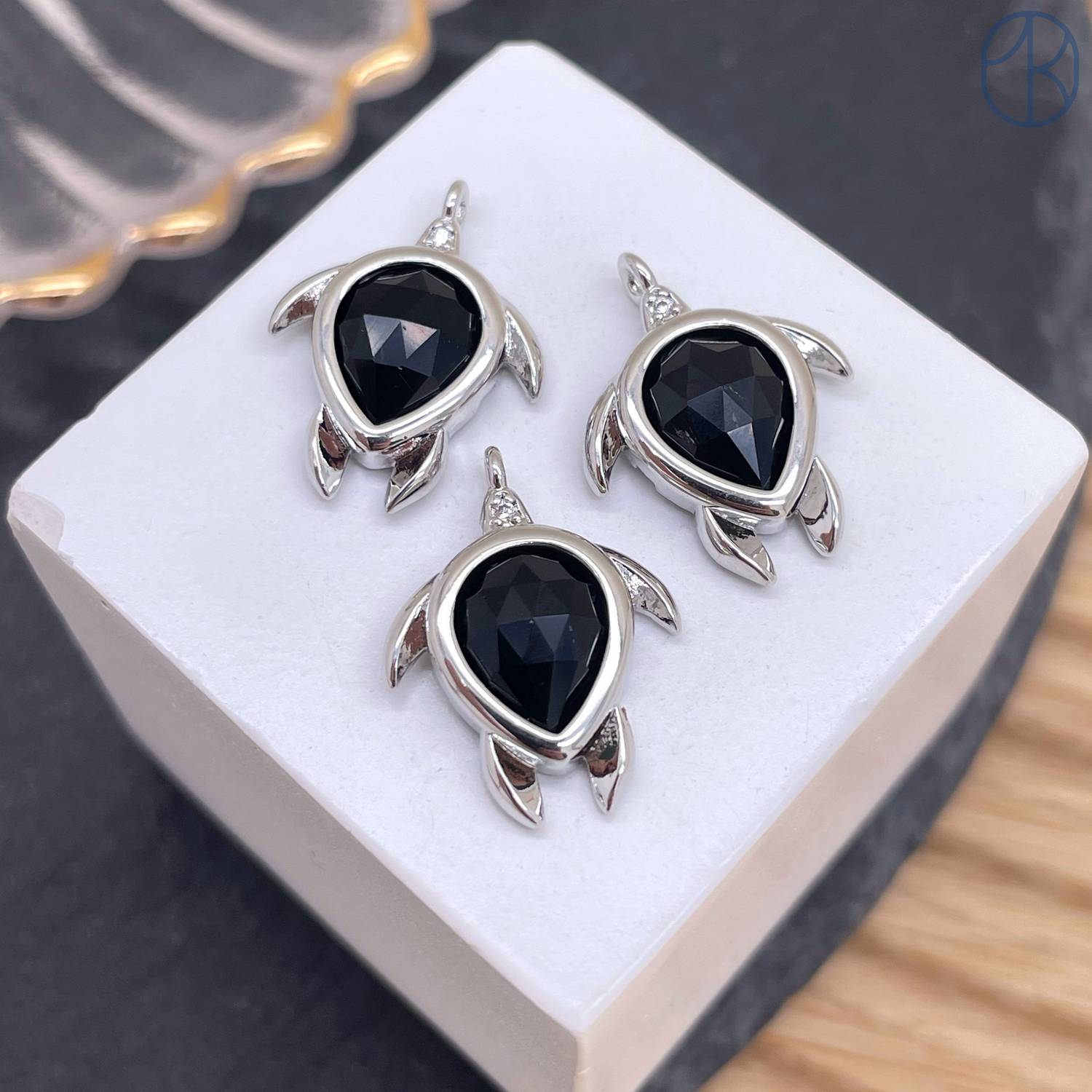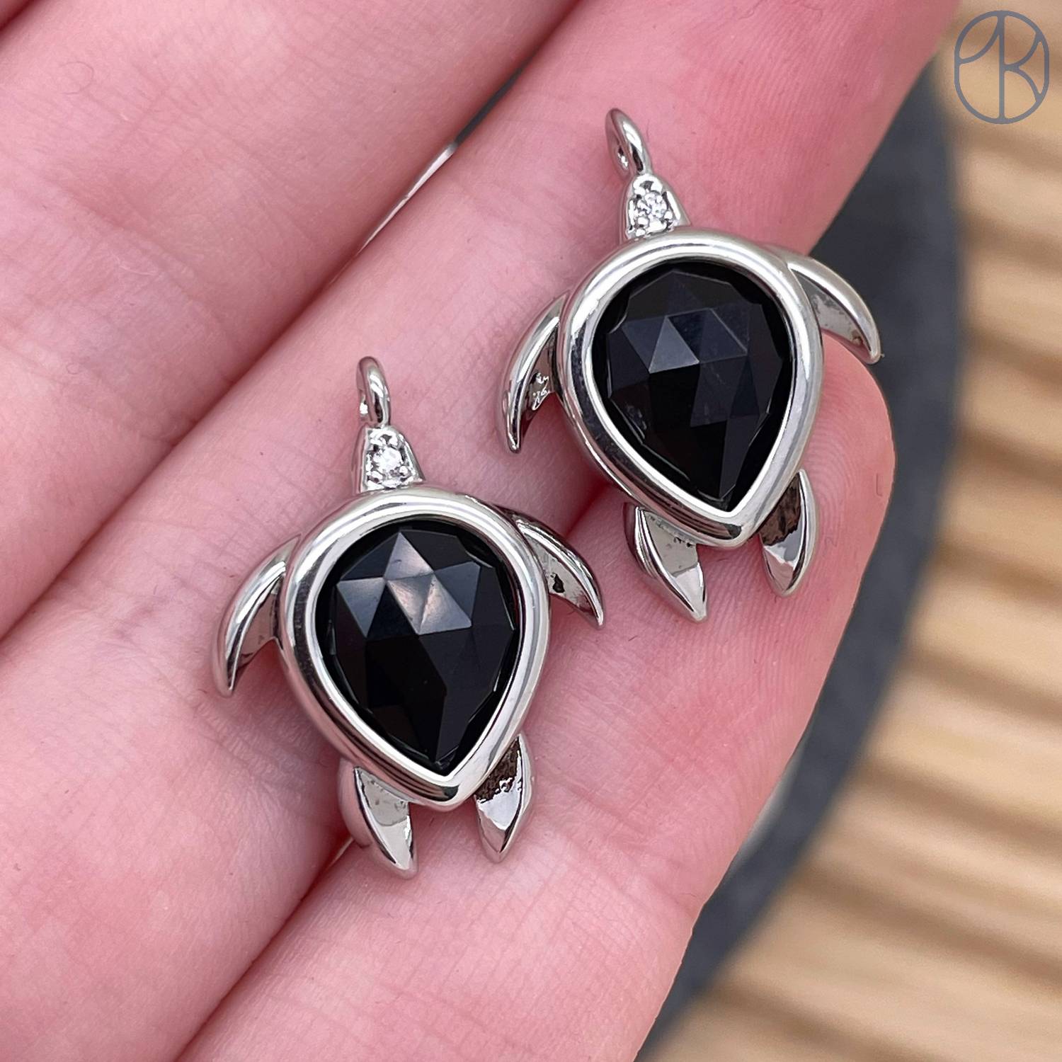 Подвеска черепаха огранка черный агат, цвет серебро 15 мм